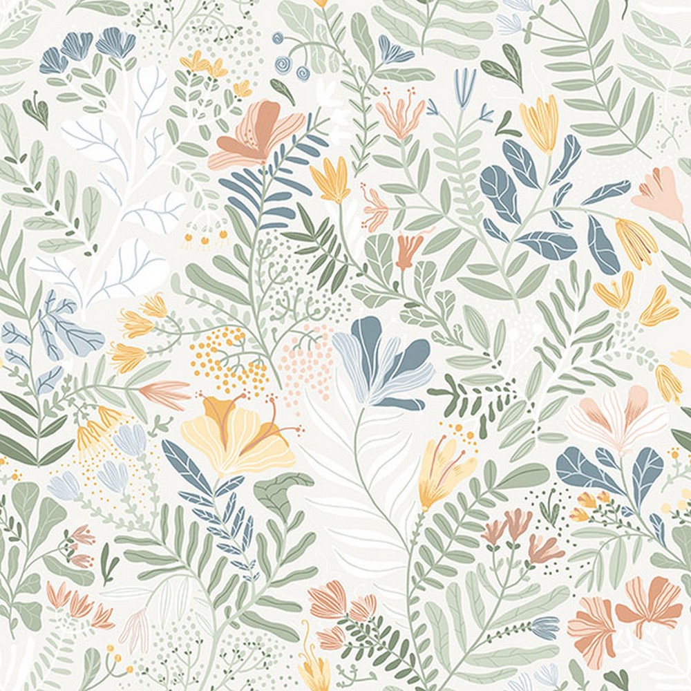 Brewster Wallcovering Brittsommar Seafoam Woodland Floral Wallpaper 4143-22005