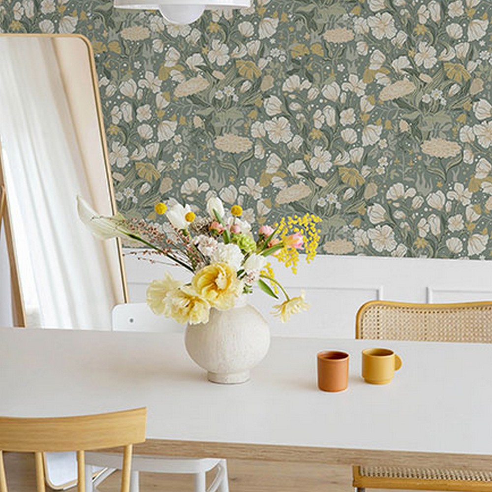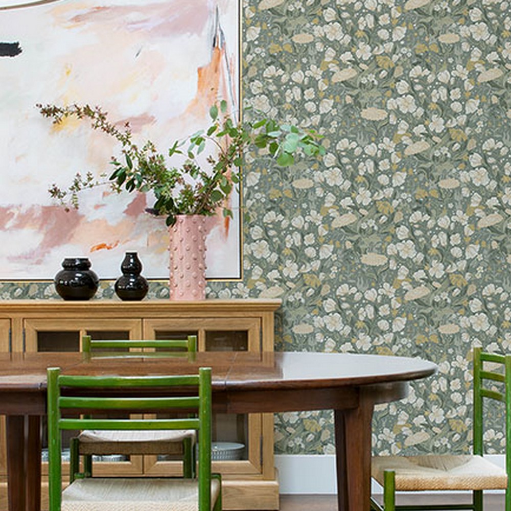 Brewster Wallcovering Hava Moss Meadow Flowers Wallpaper 4143-22014