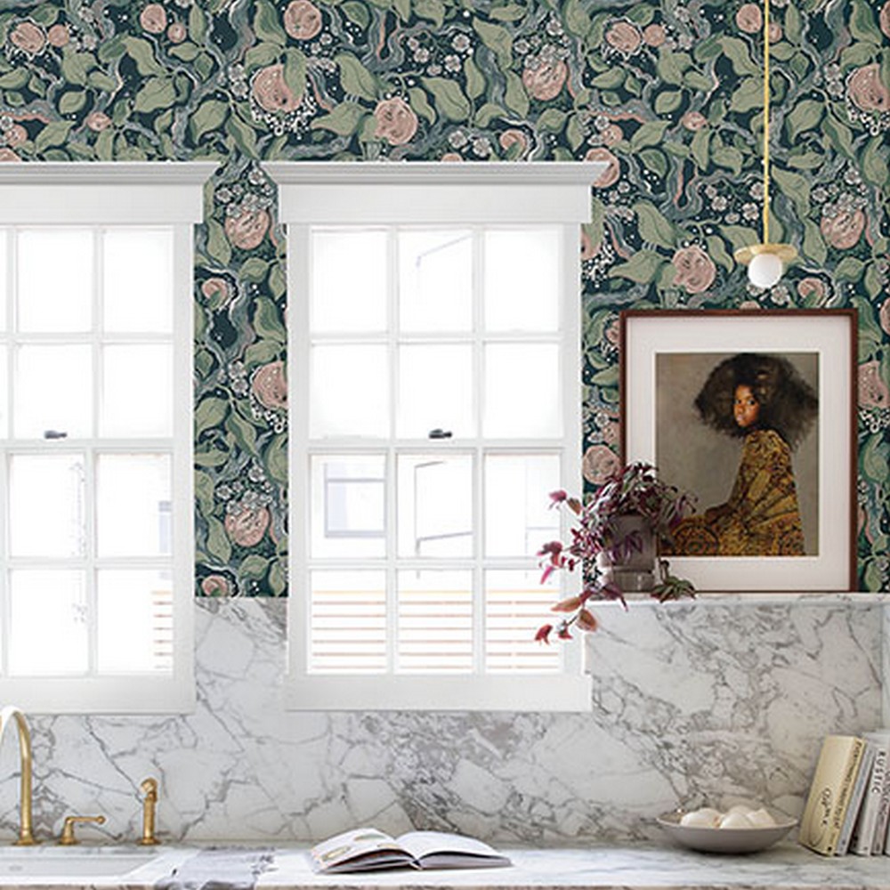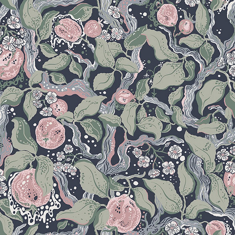 Brewster Wallcovering Kort Dark Blue Fruit and Floral Wallpaper 4143-22028
