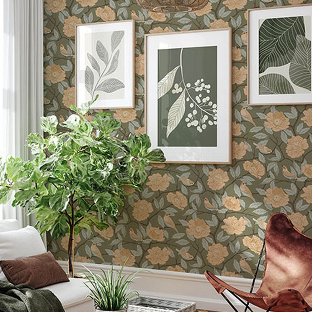 | Transform your interiors with the feminine beauty of this woodland botanical wallpaper. Curious sparrows perch within a luscious, sprawling rosebush, the illustrative forms inked in shades of sandy pink, light blue, and brown against moss green. Bernadina is an unpasted, non woven wallpaper measuring 20.9 inches wide by 33 feet long, covering approxiamately About 57.5 square feet square feet per roll A-Street Prints Page: 5 Match: Half Drop Double Double Roll Width in Inches: 20.9 Double Double Roll Length in Feet: 33 Unpasted Botanical Strippable Color Family: Greens Flowers Botanical |