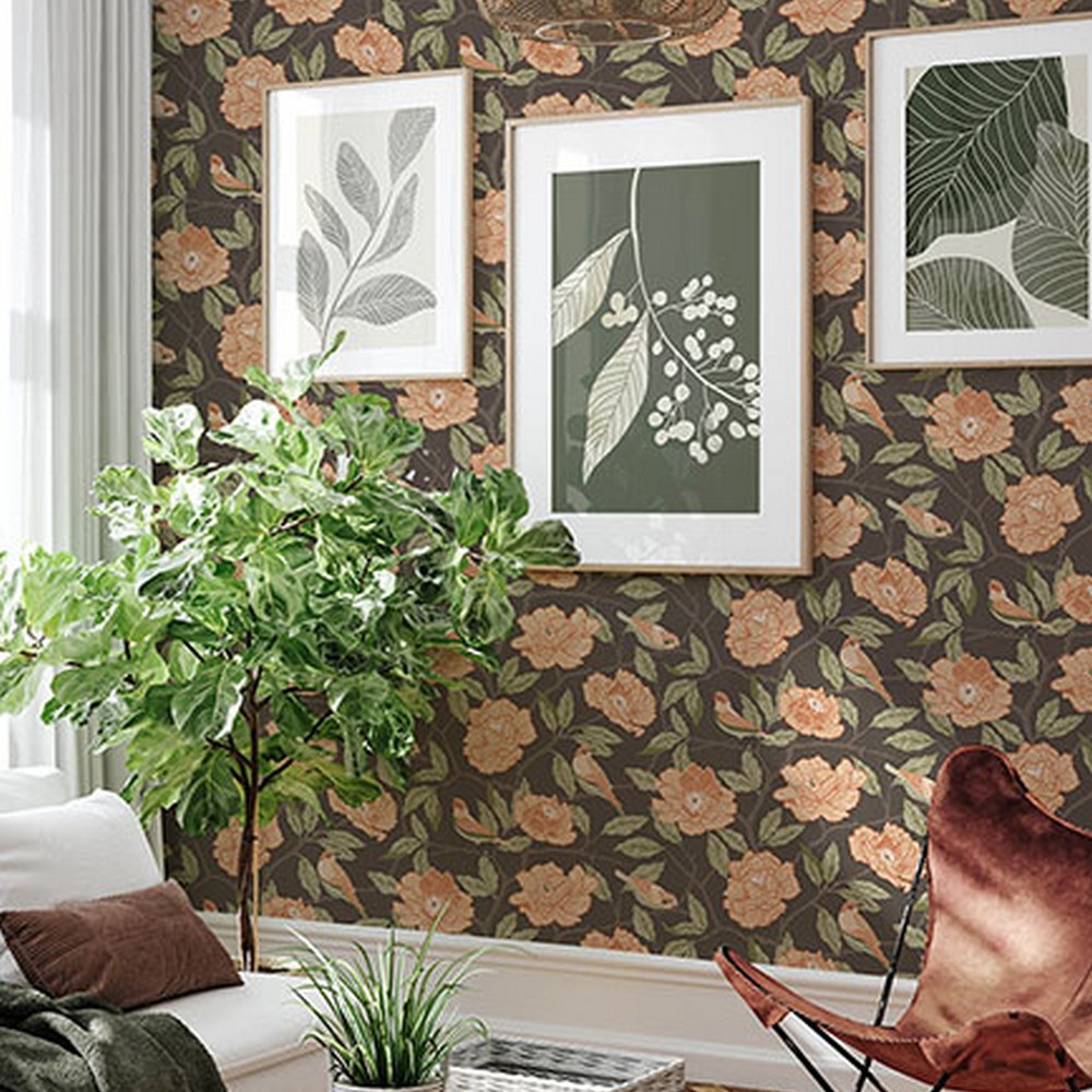 | Bring enduring, feminine charm to your interiors with this botanical wallpaper. A sprawling rosebush is visited by a flock of curious sparrows, the details illustrated in shades of pink, rust-red, green, and brown against matte black. Bernadina is an unpasted, non woven wallpaper measuring 20.9 inches wide by 33 feet long, covering approxiamately About 57.5 square feet square feet per roll A-Street Prints Page: 8 Match: Half Drop Double Double Roll Width in Inches: 20.9 Double Double Roll Length in Feet: 33 Unpasted Botanical Strippable Color Family: Blacks Flowers Botanical |