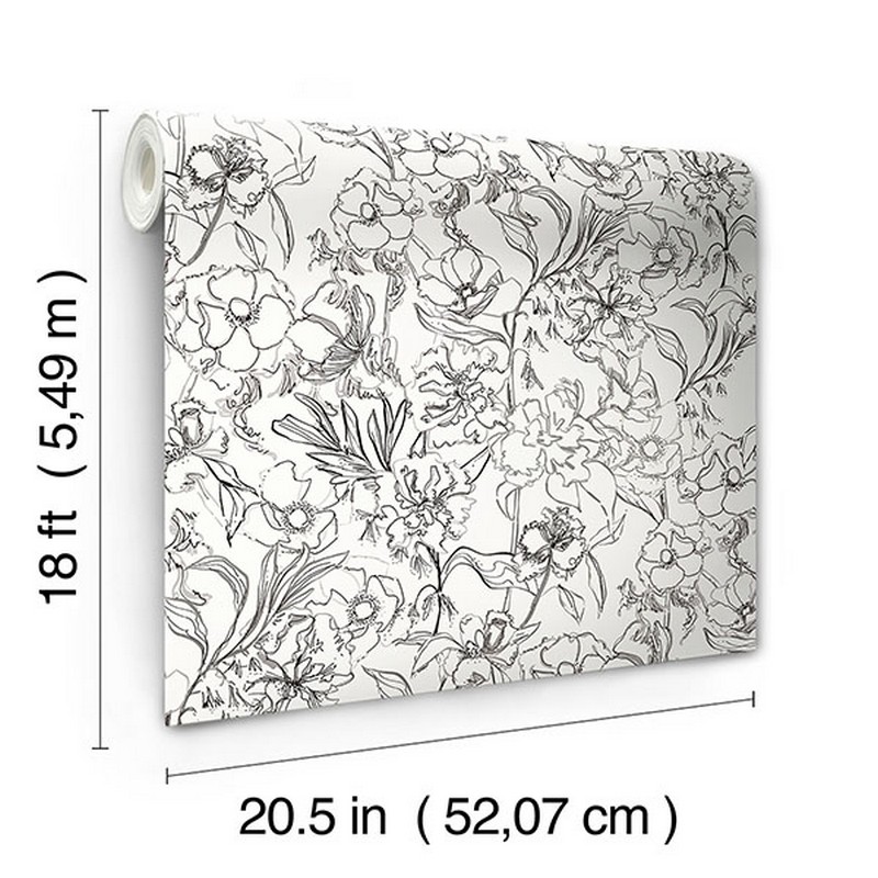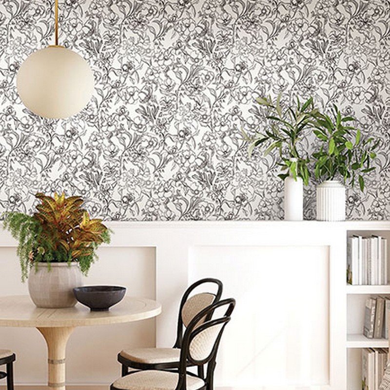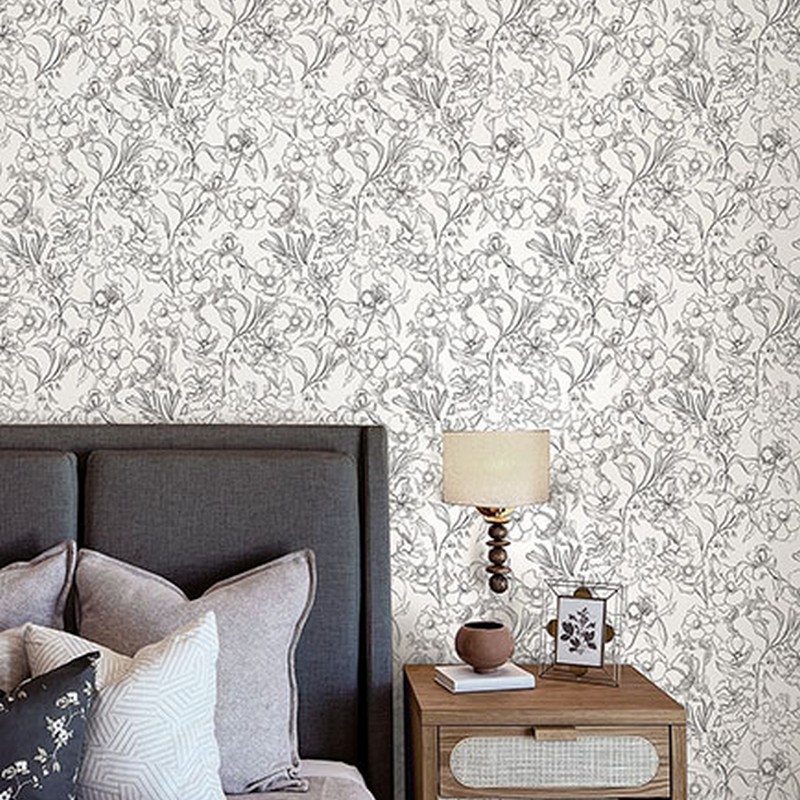 Brewster Wallcovering Grey May Bloom Peel Stick Wallpaper BDS6082