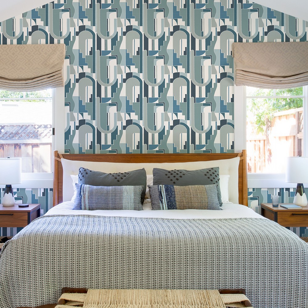Brewster Wallcovering Odele Dark Blue Geometric Archways Wallpaper 4121-72204