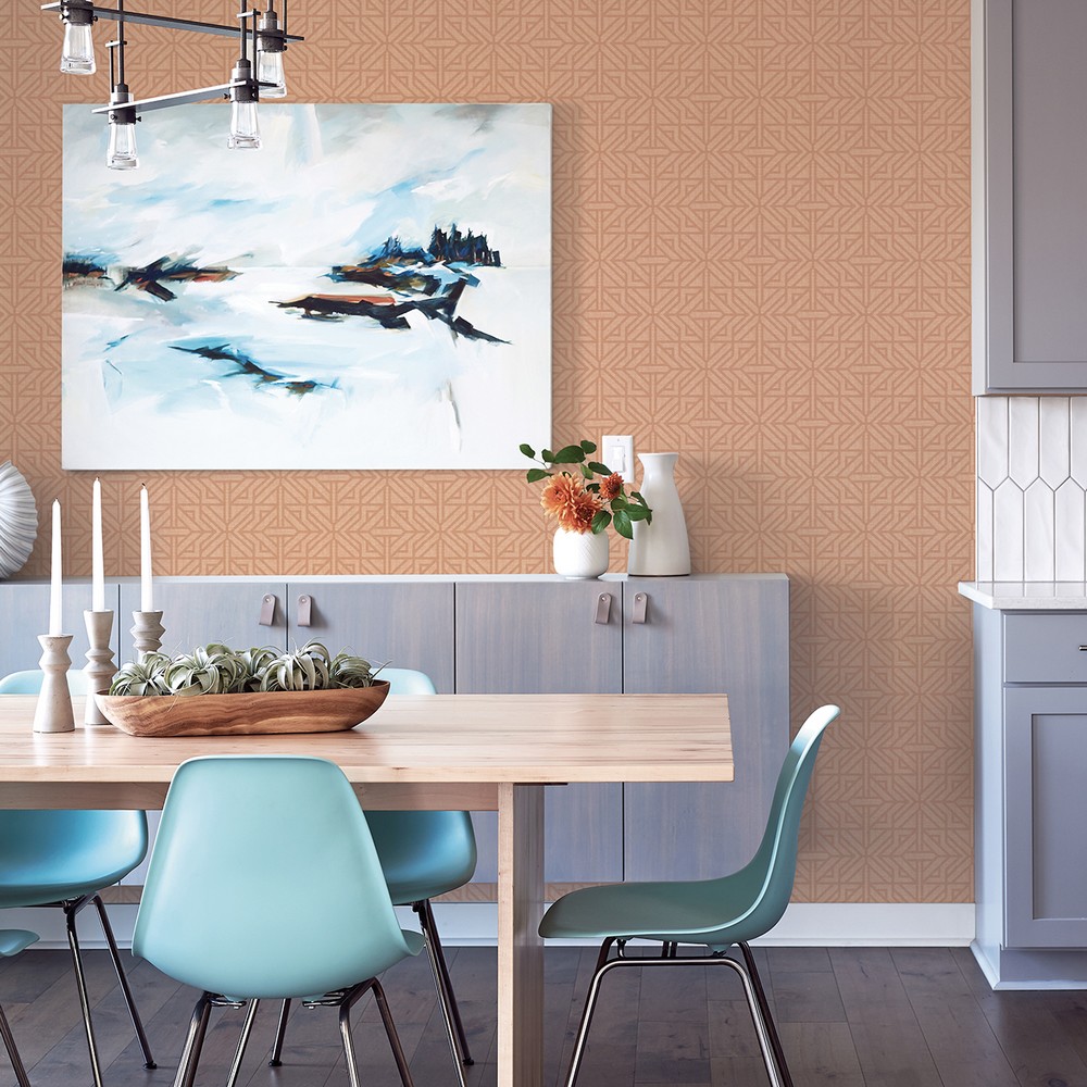 | Bring warmth and enduring detail to your walls with this grand geometric design. The linework is inked in terracotta along a faux linen backdrop a few shades lighter. Hesper is an unpasted, non woven wallpaper. A-Street Prints Page: 11 Match: Straight Double Double Roll Width in Inches: 20.5 Double Double Roll Length in Feet: 33 Unpasted Graphics Strippable Color Family: Reds Geometrics Graphics |