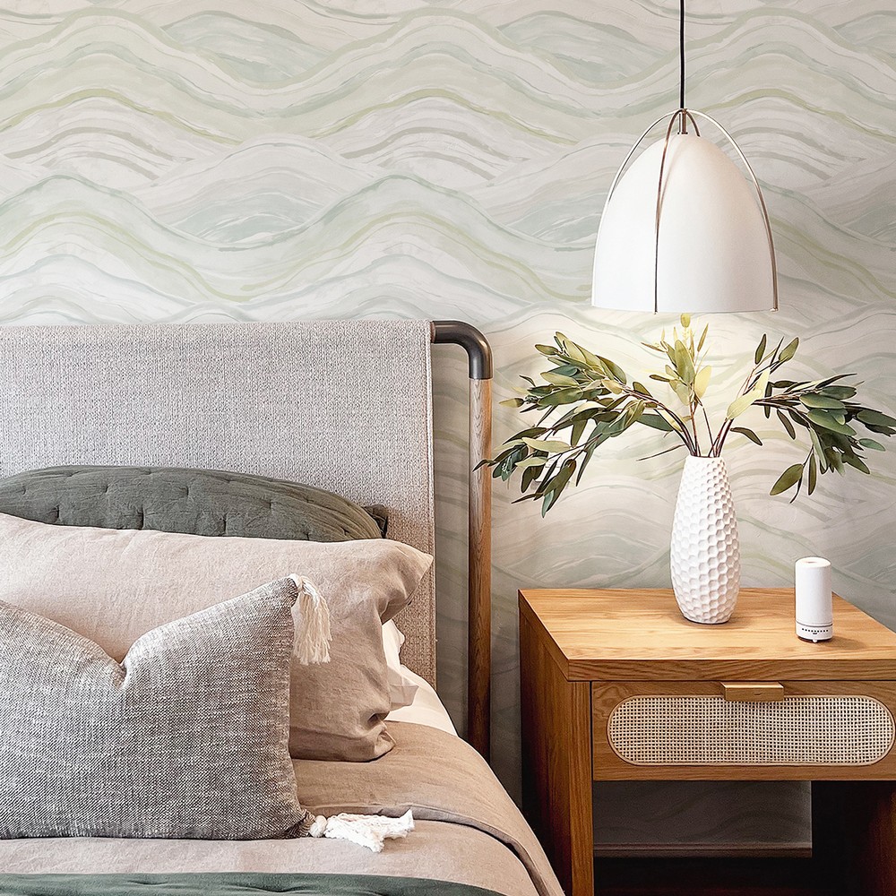 | Wrap your walls in the artistic serenity of this stunning abstract design. Featuring shades of soft green, blue, and grey accented with thin bands of pearlescent sage, the striated waves are reminiscent of distant, rolling hills. Dorea is an unpasted, non A-Street Prints Page: 18 Match: Straight Double Double Roll Width in Inches: 20.5 Double Double Roll Length in Feet: 33 Unpasted Abstract Strippable Color Family: Blues Abstract Abstract |