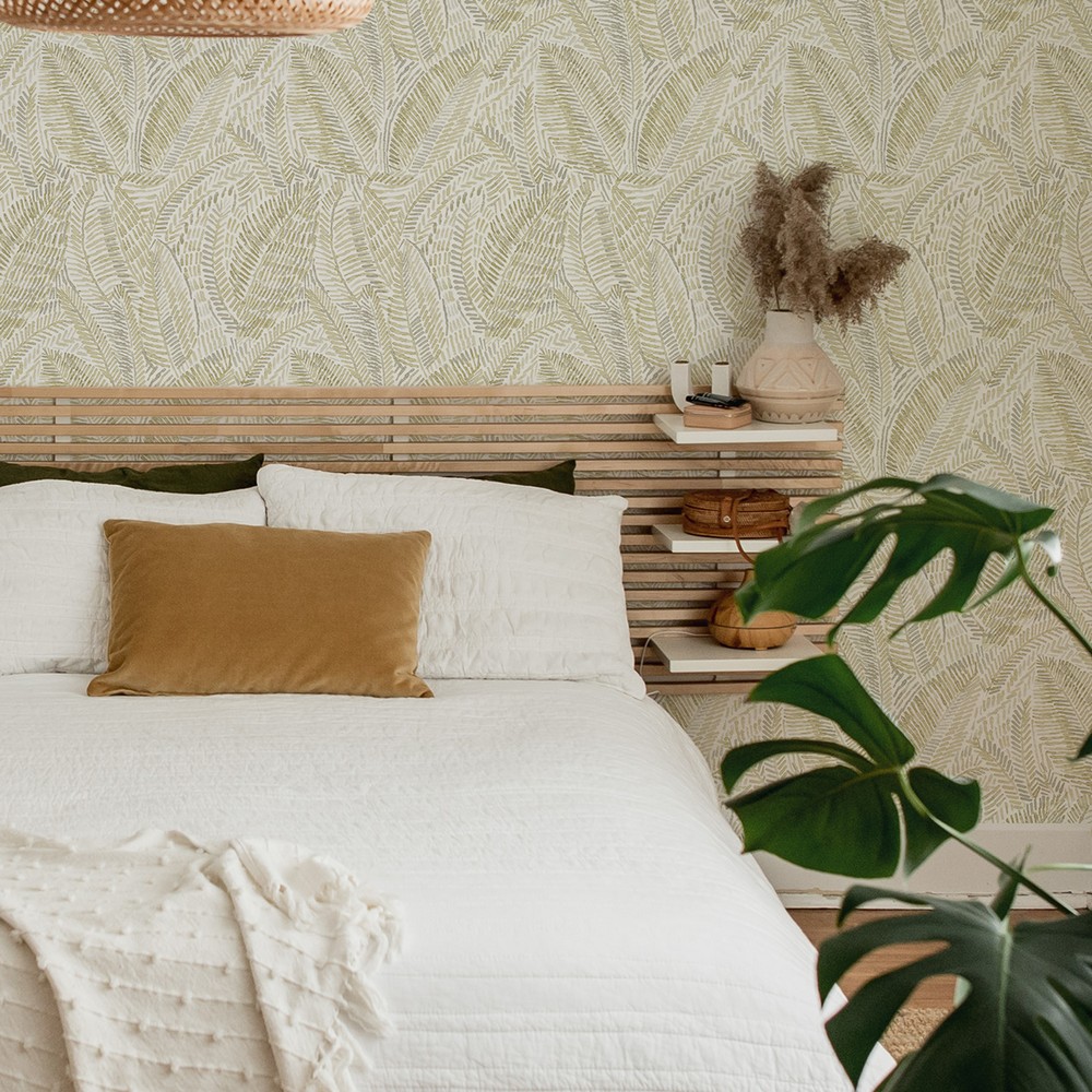 | Enjoy sophisticated beachy vibes with this tranquil tropical wallpaper. Layers of luscious leaves are painted in strokes of golden brown, beige, and taupe watercolors along a white backdrop. Fildia is an unpasted, non woven wallpaper. A-Street Prints Page: 58 Match: Straight Double Double Roll Width in Inches: 20.5 Double Double Roll Length in Feet: 33 Unpasted Abstract Strippable Color Family: Yellows Botanical Abstract |