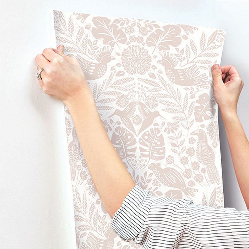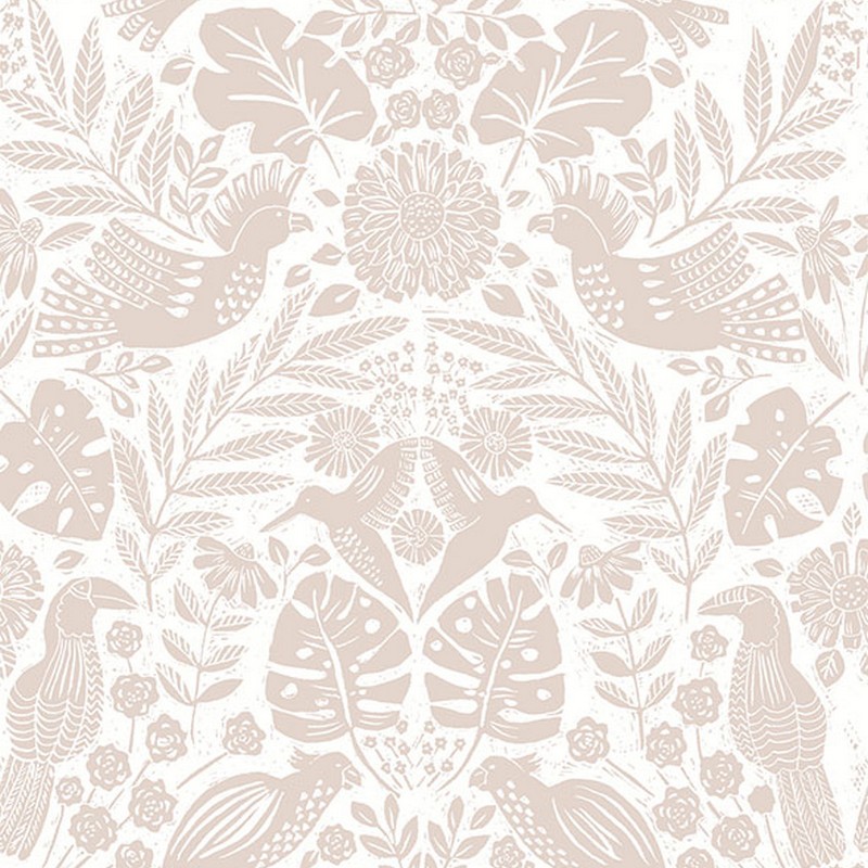 Brewster Wallcovering Nestle Pink Bird Block Print Wallpaper 4122-27002