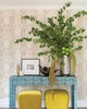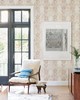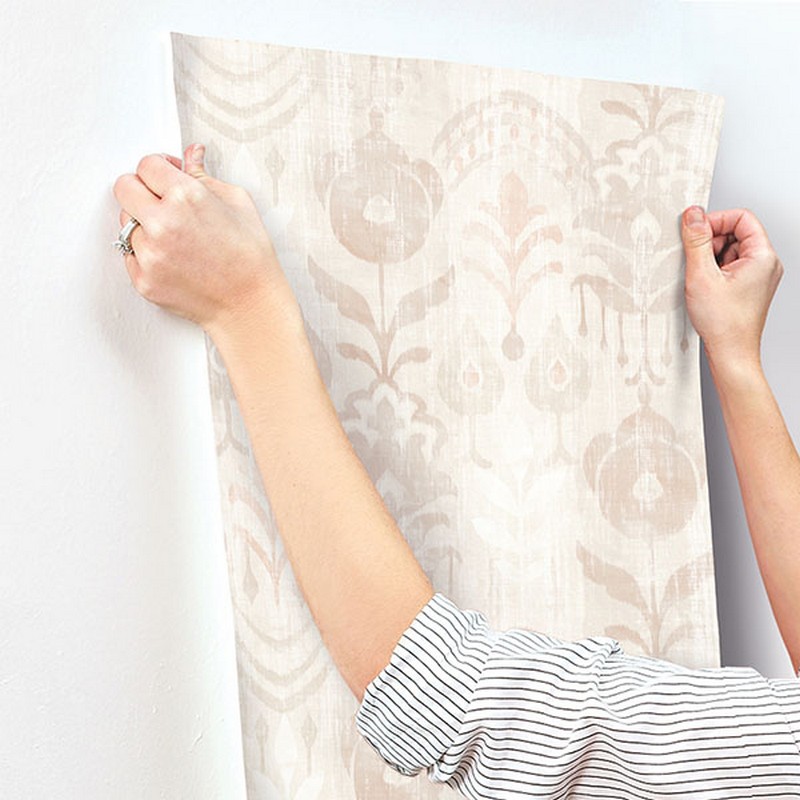 Bring worldly, feminine beauty to your walls with this bohemian wallpaper. Block-printed, pale pink florals decorate a backdrop elevated with subtle, taupe and white shibori striping. Pavord is an unpasted, non woven wallpaper measuring 20.5 inches wide by 33 feet long, covering approximately 56.4 square feet per roll.