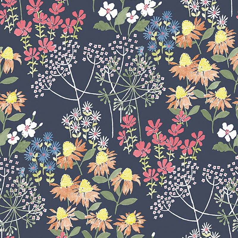 Brewster Wallcovering Cultivate Navy Springtime Blooms Wallpaper 4122-27016