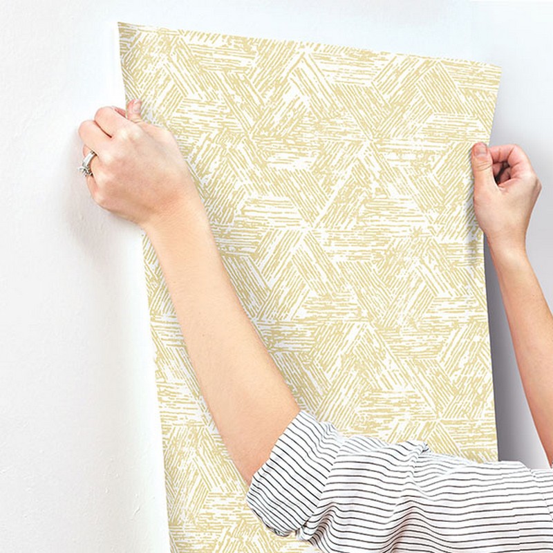 Bring comforting dimension to your interiors with this charming geometric wallpaper. The triangular white and yellow segments are imbued with texture for added depth. Retreat is an unpasted, non woven wallpaper measuring 20.5 inches wide by 33 feet long, covering approximately 56.4 square feet per roll.