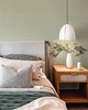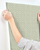 Timeless chevron is reinvigorated with inviting color and grasscloth detailing. The pattern takes shape from the interlacing of white and light green strands finished with raised inks for a tactile feel. Glynn is an unpasted, non woven wallpaper measuring 20.5 inches wide by 33 feet long, covering approximately 56.4 square feet per roll.