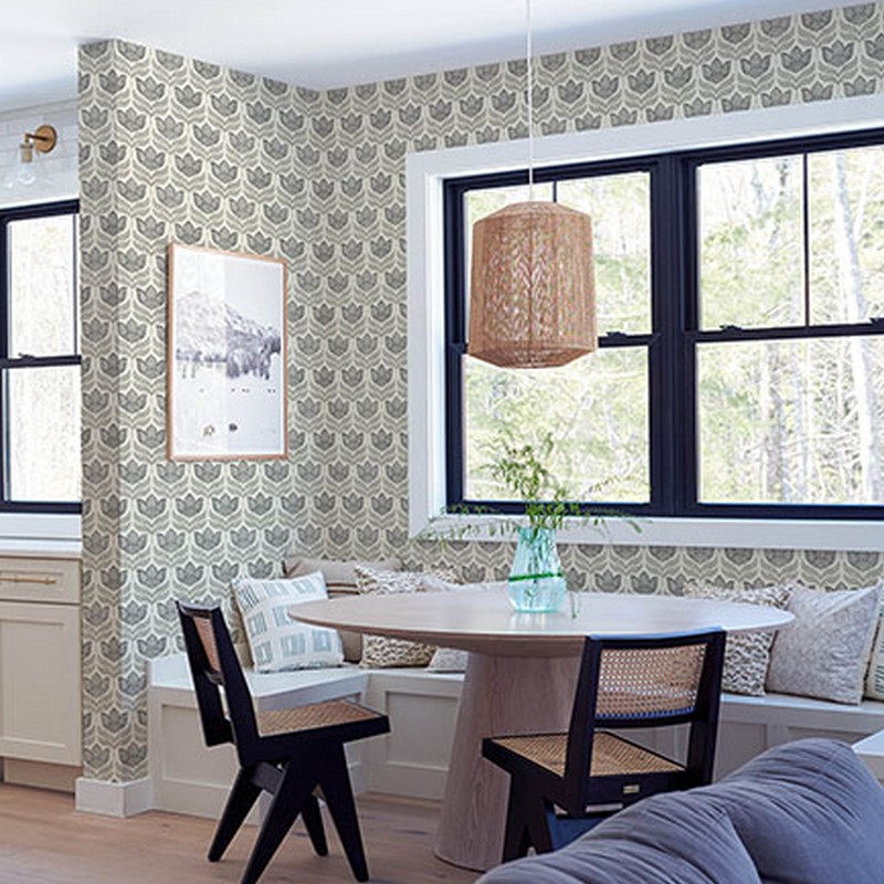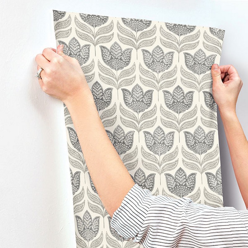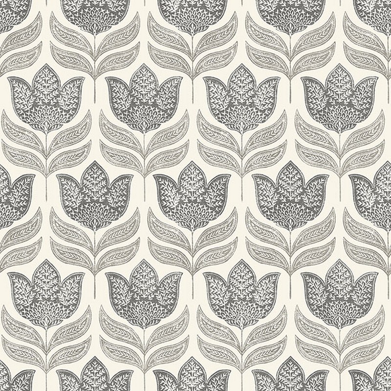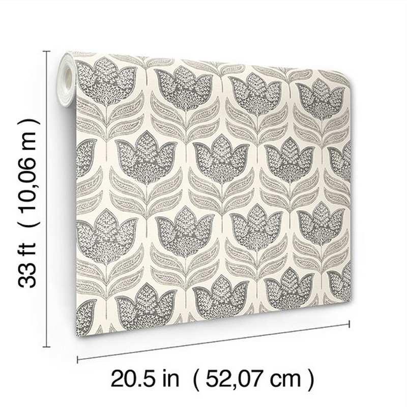 Brewster Wallcovering Cathal Charcoal Tulip Block Print Wallpaper 3125-72343
