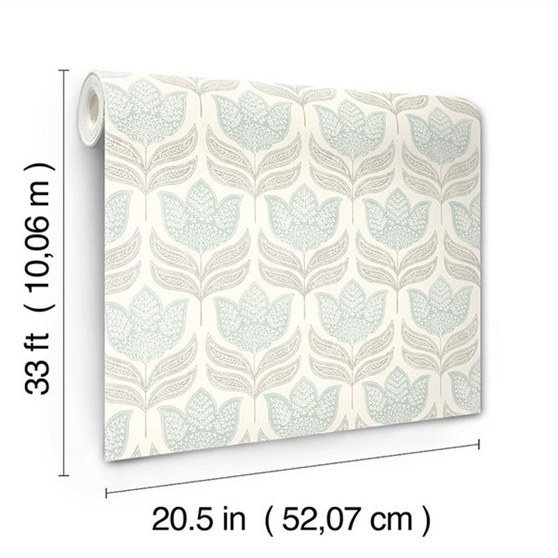 Brewster Wallcovering Cathal Aqua Tulip Block Print Wallpaper 3125-72344