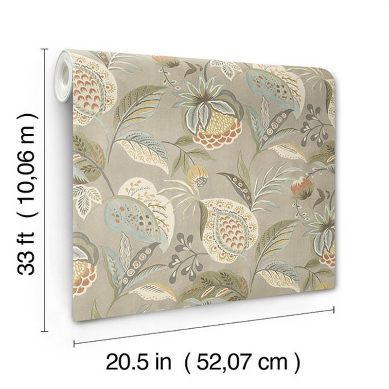 Brewster Wallcovering Bohemian Taupe Jacobean Wallpaper 3125-72301