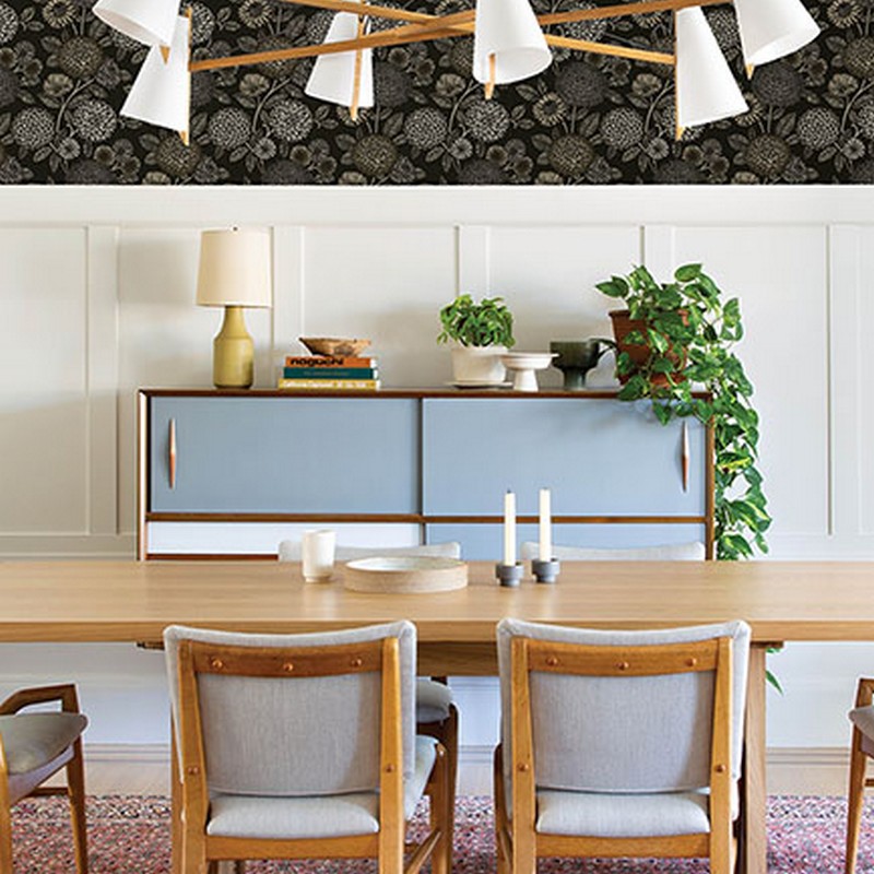 | Block-printed zinnias and daisies climb along winding stems, inked in shades of grey, taupe, and light brown against inky black. Zalipie is a prepasted, sure strip wallpaper measuring 20.5 inches wide by 33 feet long, covering approximatelyAbout 56.4 square feet per roll Chesapeake Page: 31 Match: Straight Roll Width in Inches: 20.5 Roll Length in Feet: 33 Prepasted Botanical Strippable Color Family: Blacks Flowers Botanical Effect: |