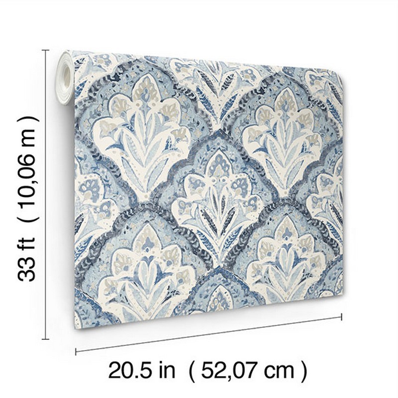 Brewster Wallcovering Mimir Blue Quilted Damask Wallpaper 3125-72337