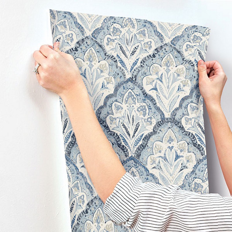 | Imbued with all the comforts of a handmade quilt, this design features a scalloped damask with floral detailing and a charming palette of blues accented by taupe and white. Mimir is a prepasted, sure strip wallpaper measuring 20.5 inches wide by 33 feet long, covering approximatelyAbout 56.4 square feet per roll Chesapeake Page: 53 Match: Straight Roll Width in Inches: 20.5 Roll Length in Feet: 33 Prepasted Botanical Strippable Color Family: Blues Damask Botanical Effect: |