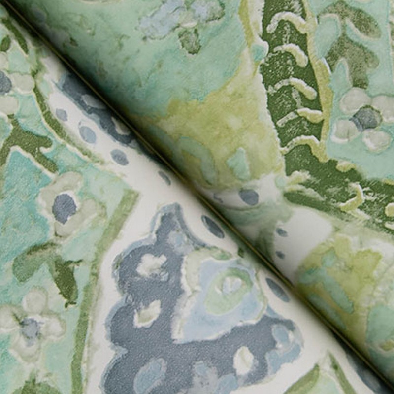 | Imbued with all the comforts of a handmade quilt, this design features a scalloped damask with floral detailing and a charming palette of aquamarine, lime, cornflower blue, and white. Mimir is a prepasted, sure strip wallpaper measuring 20.5 inches wide by 33 feet long, covering approximatelyAbout 56.4 square feet per roll Chesapeake Page: 56 Match: Straight Roll Width in Inches: 20.5 Roll Length in Feet: 33 Prepasted Botanical Strippable Color Family: Blues Damask Botanical Effect: |