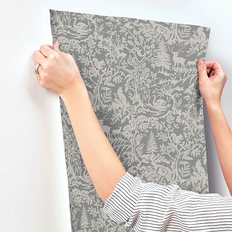 | This scenic woodland wallpaper features deer, foxes, rabbits, squirrels and more exploring the forest, the details inked in rich grey and white. Alrick is a prepasted, sure strip wallpaper measuring 27 inches wide by 27 feet long, covering approximatelyAbout 60.8 square feet per roll Chesapeake Page: 18 Match: Straight Roll Width in Inches: 27 Roll Length in Feet: 27 Prepasted Woods & Forests Strippable Color Family: Greys Animals Woods & Forests Effect: |