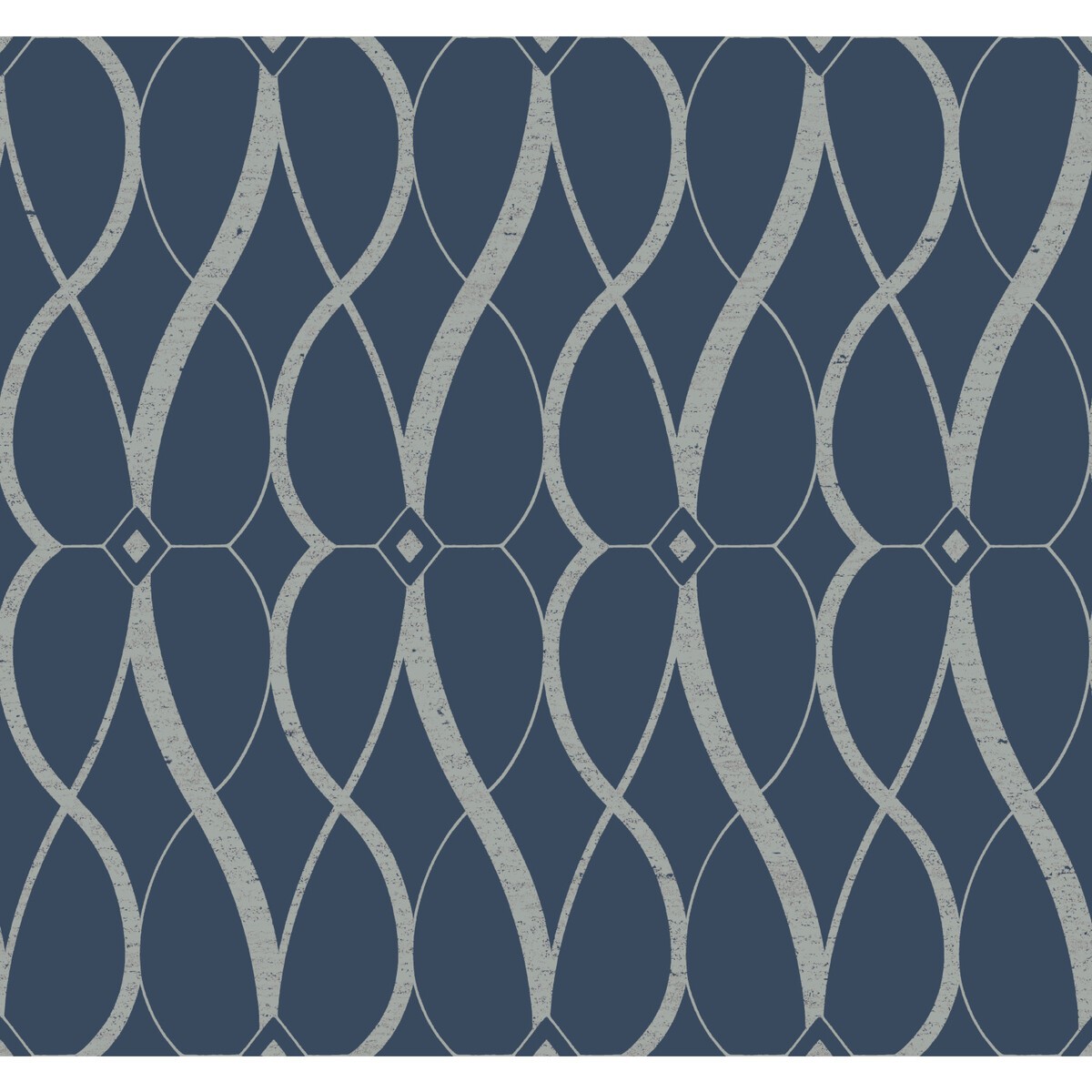 | Kravet Wallcoverings ANTONINA VELLA MODERN METALS SECOND EDITION GEOMETRIC METALLIC PRINT PRETRIMMED BLUE and SILVER Wallpaper Priced and sold by the roll of 9 Yards Up the bolt |