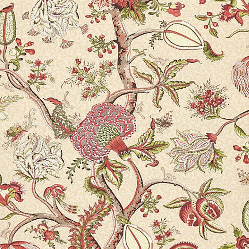 Pondicherry Wallcovering Turkey Red On Lime Fern