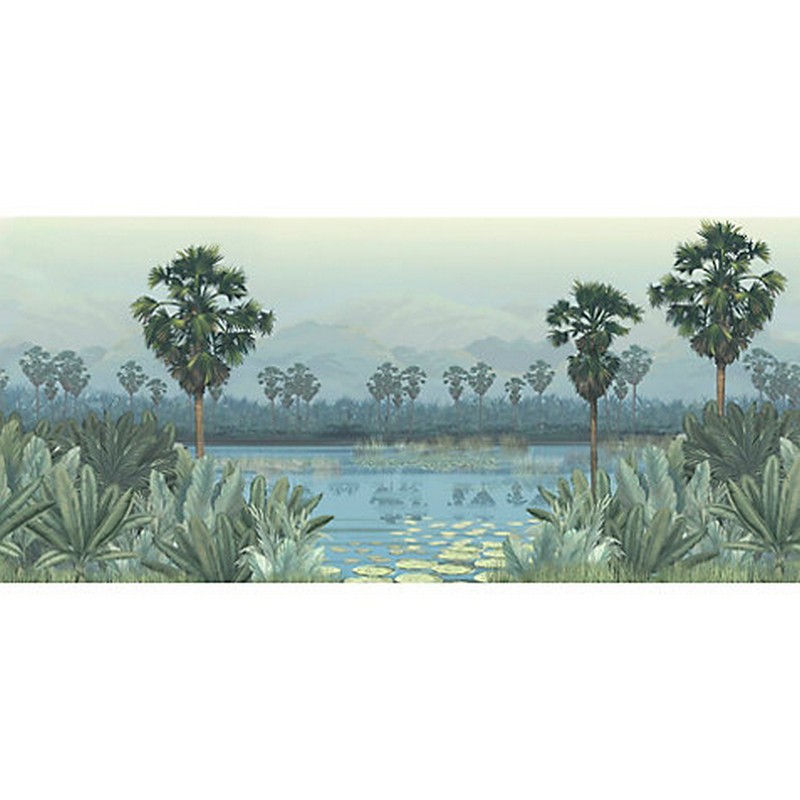 | Scalamandre Large Jungle Wallpaper Match: STRAIGHT Transform your space with the Tropical Mural - 9 Panel Set from the Timeless Trends Wallcovering collection. Inspired by the lush landscapes of South America, this mural captures the beauty of nature with a serene design featuring mountain peaks, tranquil waters, and floating evergreen lily pads beneath tall palm trees. Ideal for elevating a formal dining room or grand foyer, this wallcovering brings elegance and a sense of calm to any interior. Roll Size: sold in increments of 1 |