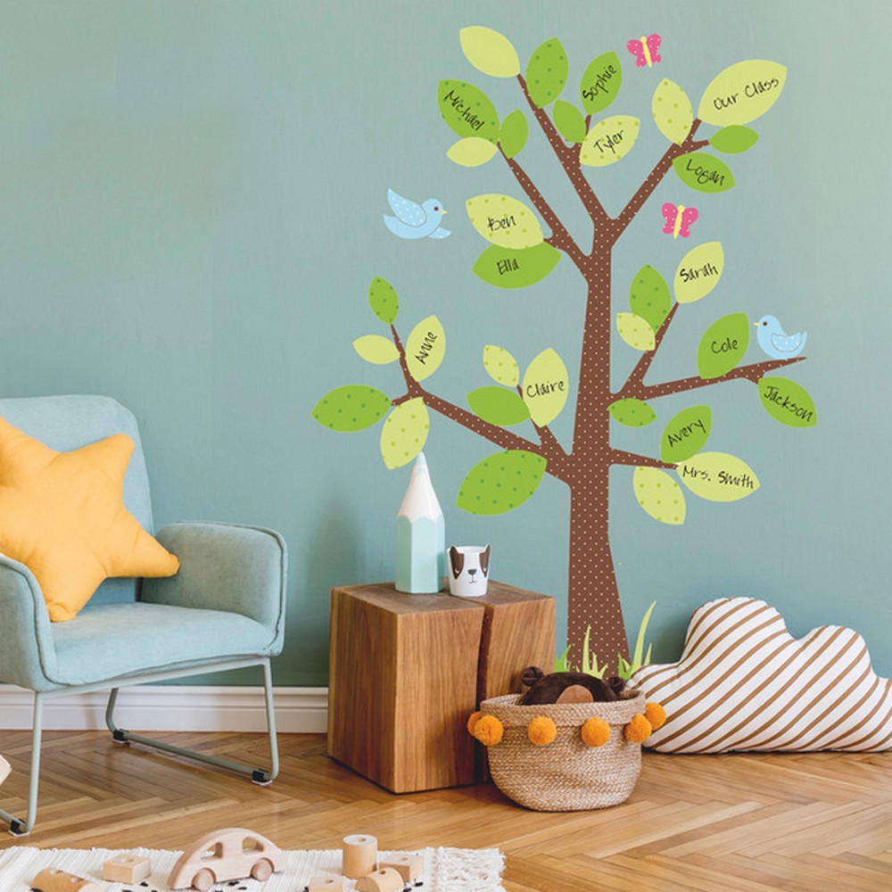 | Looking for a unique way to display your class's names, books you're reading, or other information? This dry erase tree peel and stick wall decal is a fantastic option! Featuring the pieces needed for building the trunk, branches, and 32 leaves, this interactive and repositionable tree decal can be assembled by the teacher or as a hands-on activity as a whole class. Once assembled, all pieces of this decal set can be used as a dry erase board, with markers sold separately. Kids Tree Dry Erase Decal contains 47 pieces on 2 sheets that each measures 36.5-in x 8.625-in. RoomMates Color Family: Greens Kids Graphics Effect: |