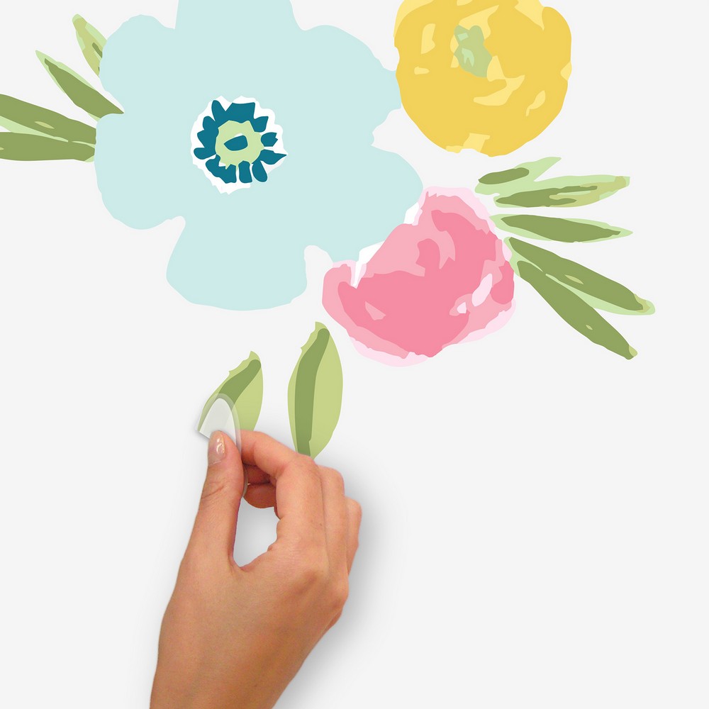 lovely, pink, and painterly, these peel and stick wall decals bring a lively burst of color to any room with ease! This set of renter-friendly and removable wall decals features an arrangement of illustrative blooms in pink, blue, and yellow for a fun botanical element in any room. Exploded Floral Pink Wall Decals contains 9 pieces on 2 sheets.