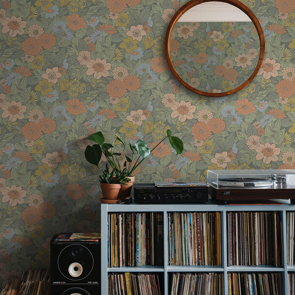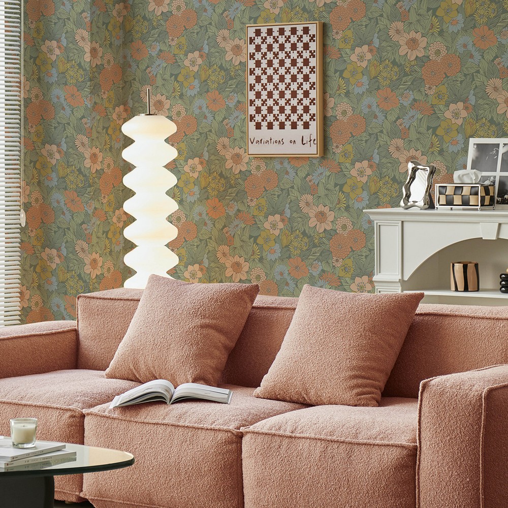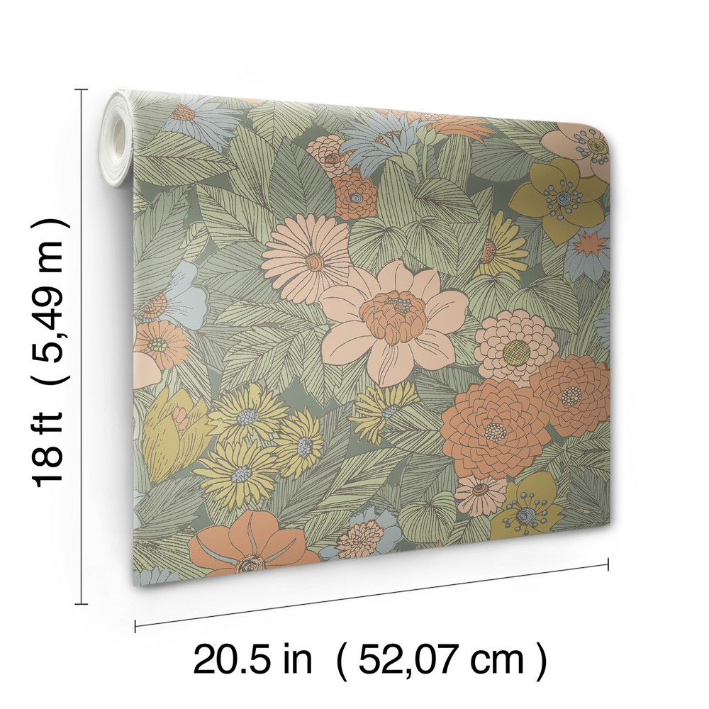 Retro Floral Pink & Green Peel & Stick Wallpaper