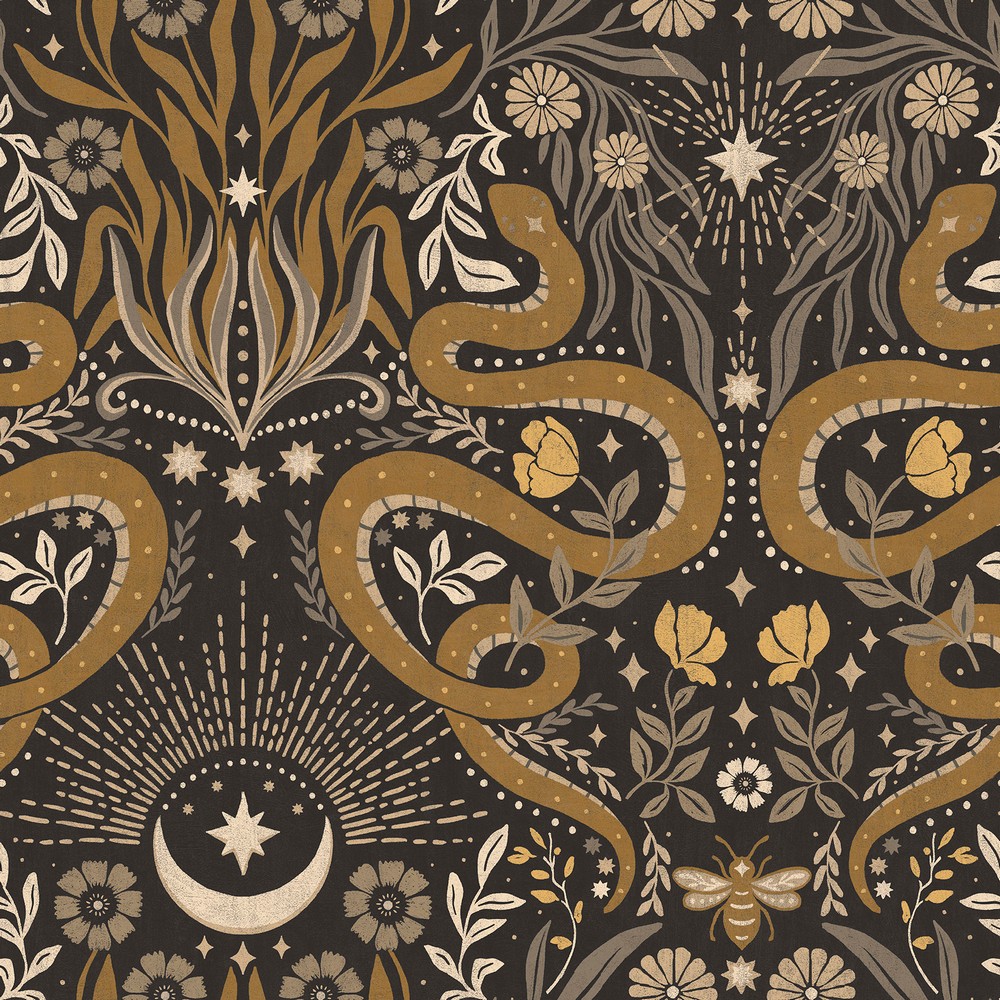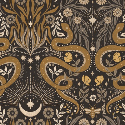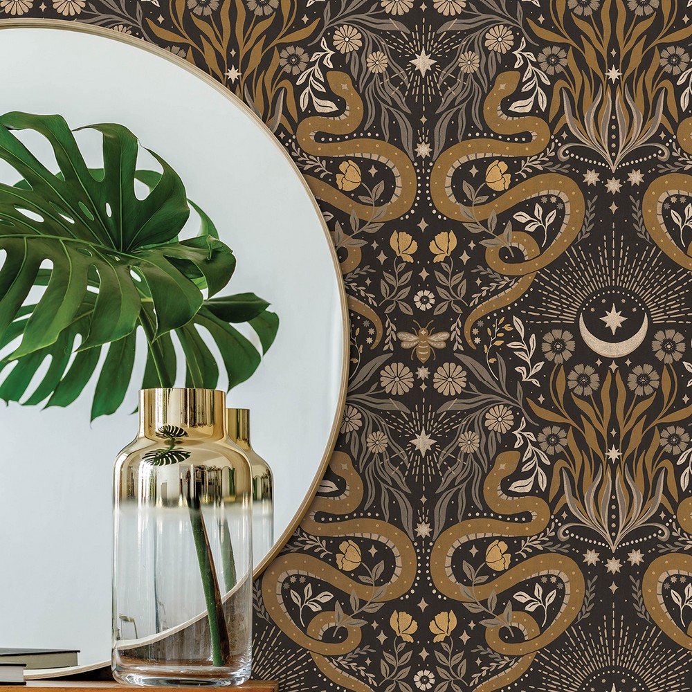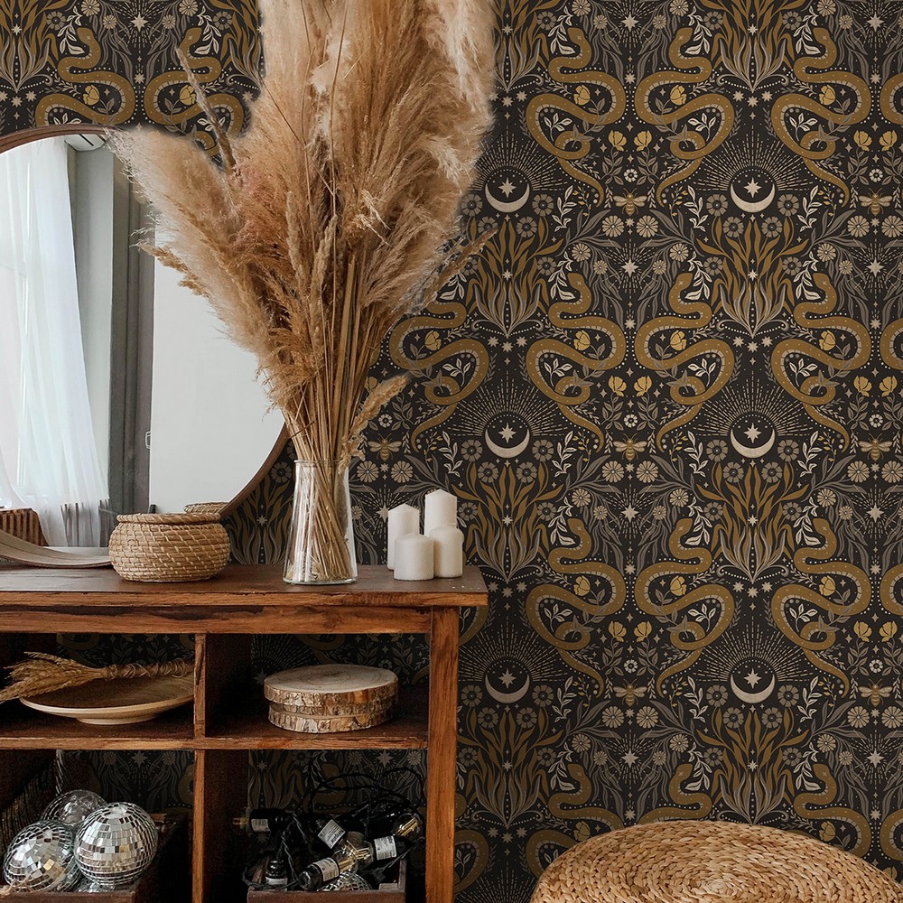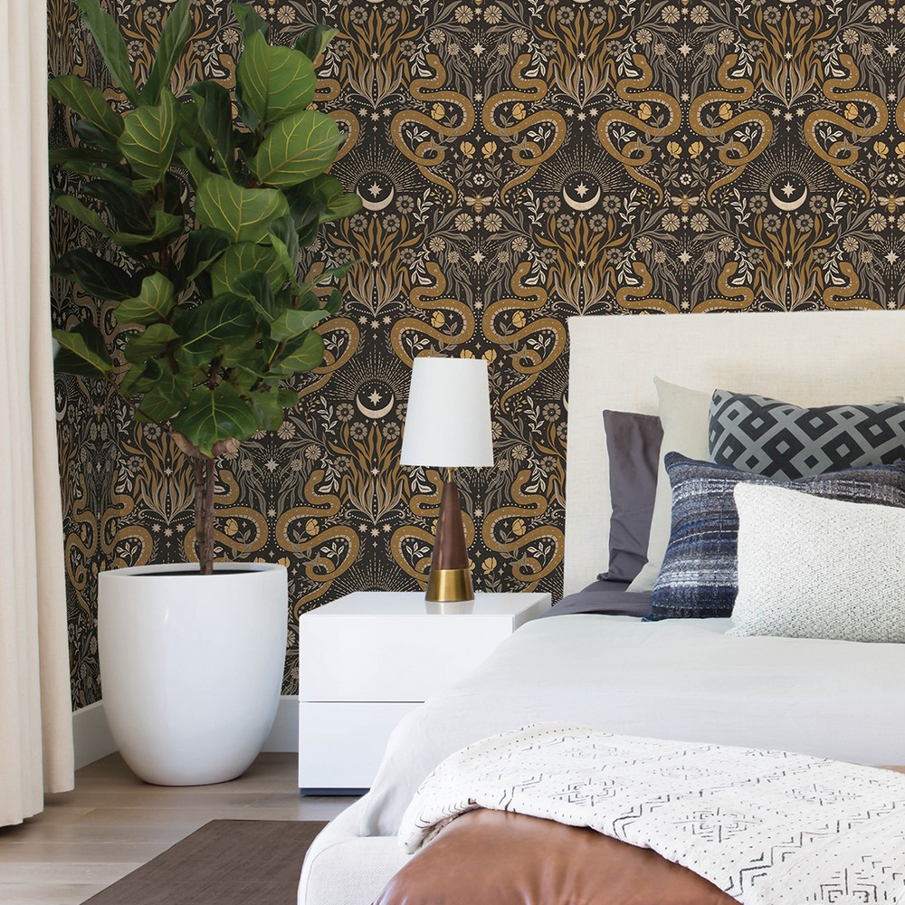 Mystic Serpent Black Gold Peel & Stick Wallpaper