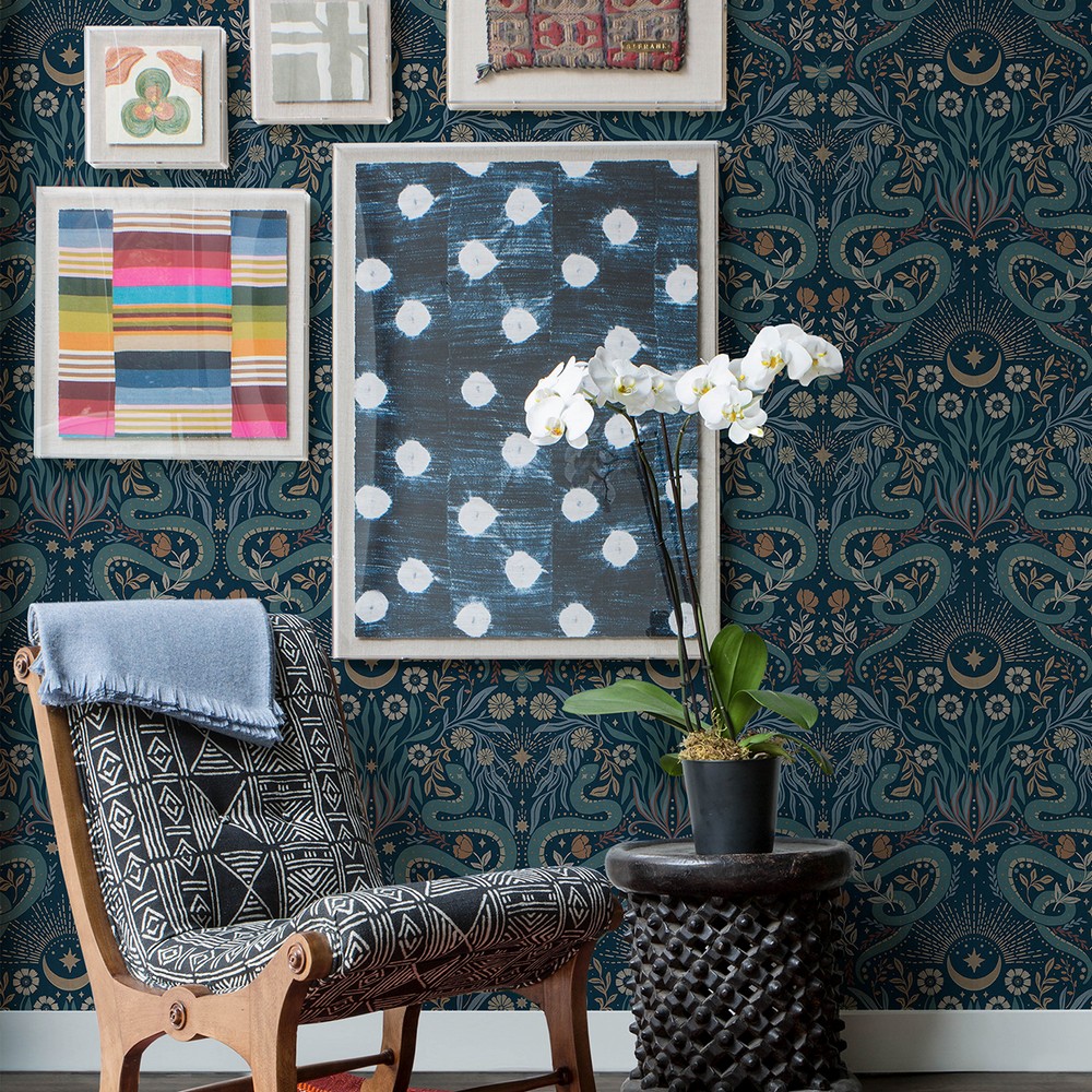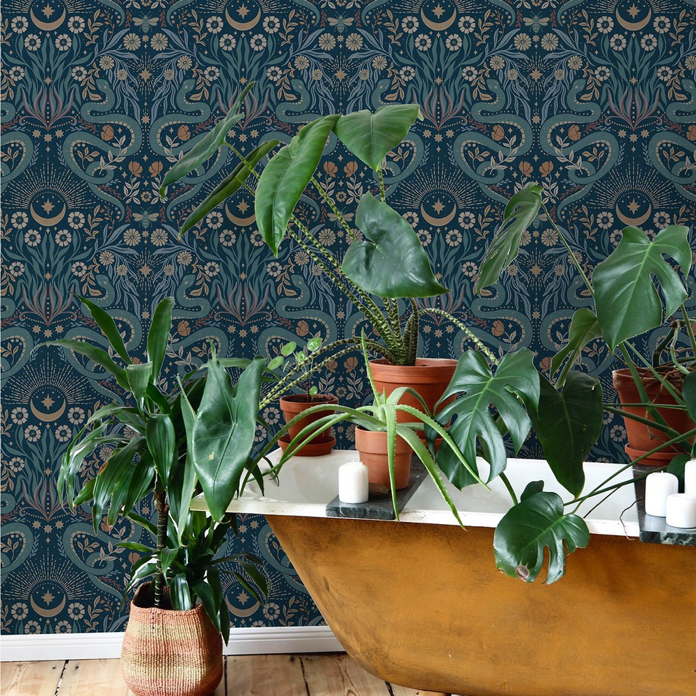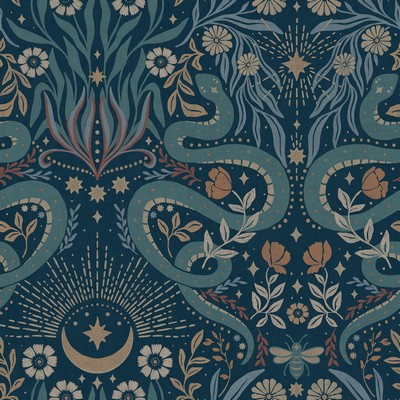 Mystic Serpent Navy Peel & Stick Wallpaper