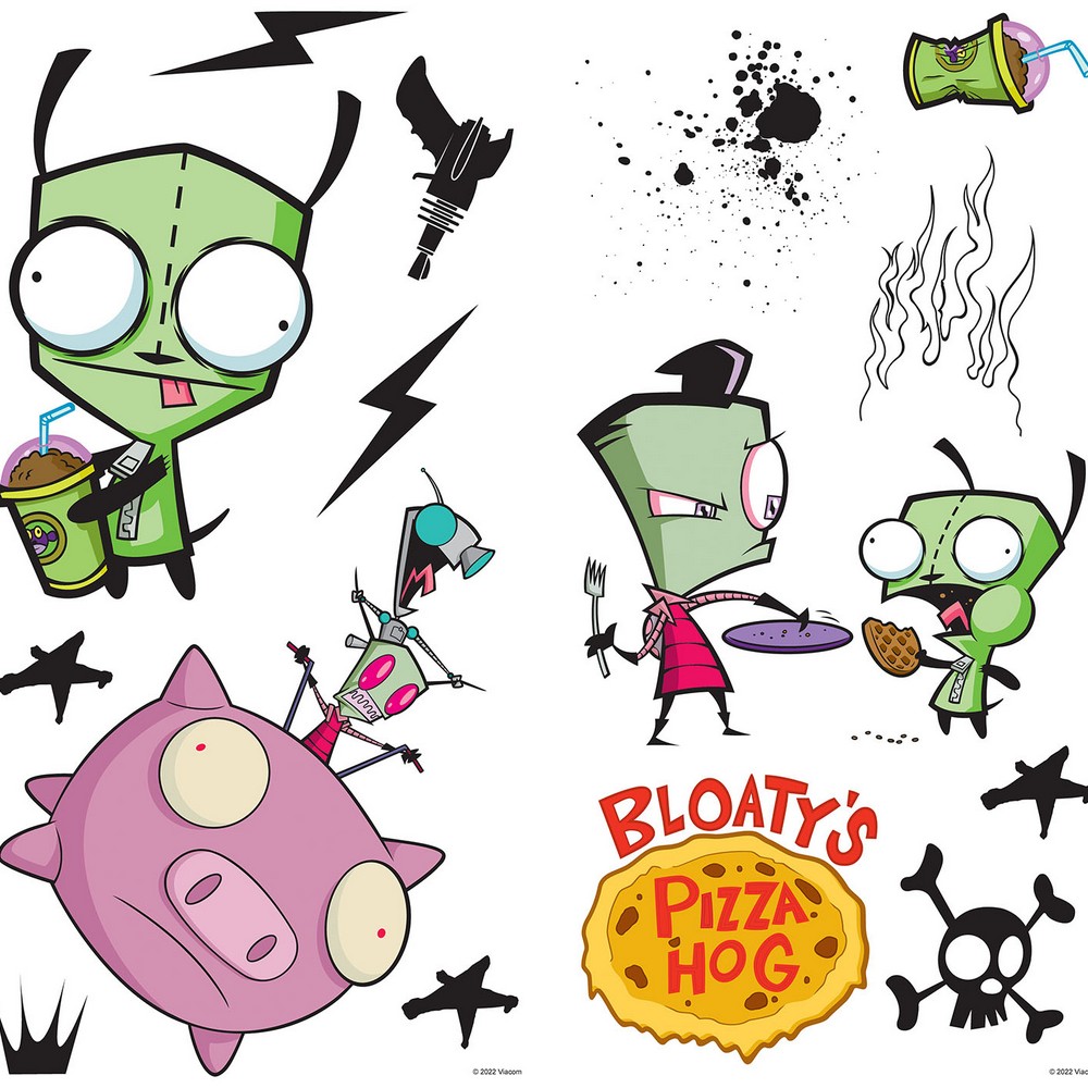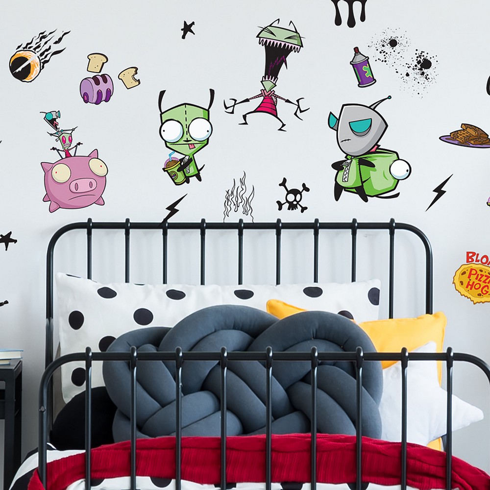 | Invader Alert! Invader Zim has landed on Earth from Planet Irk and is ready to expand the Irken Empire and conquer your walls with extraterrestrial - err- HUMAN style! Complete with Zim’s different moods, Bloaty’s Pizza Hog logo and mascot, and more other-worldly graphics, these decals of DOOM are perfect for any Invader Zim fan. RoomMates Color Family: Greens Whimsical Licensed Effect: |