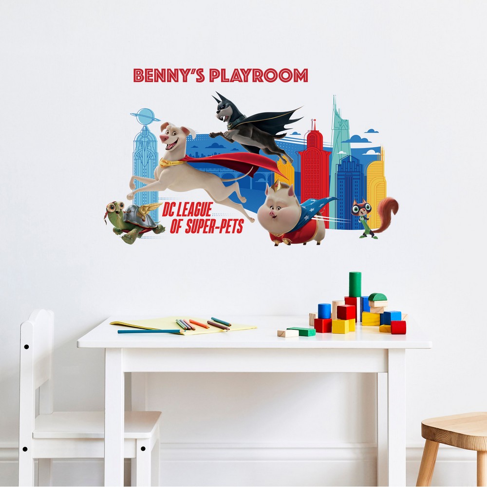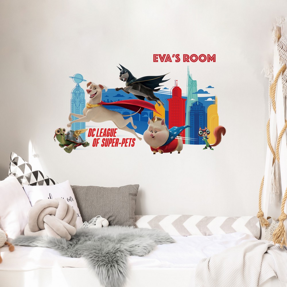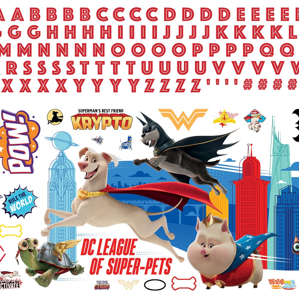 | These officially licensed DC League of Super-Pets Giant Peel and Stick Wall Decals features the Justice League and their Super-Pets! Perfect for any superhero’s room, accent your walls with these removable, easy to use decals: Just PEEL, STICK, DONE! RoomMates Color Family: Reds Whimsical Licensed Effect: |