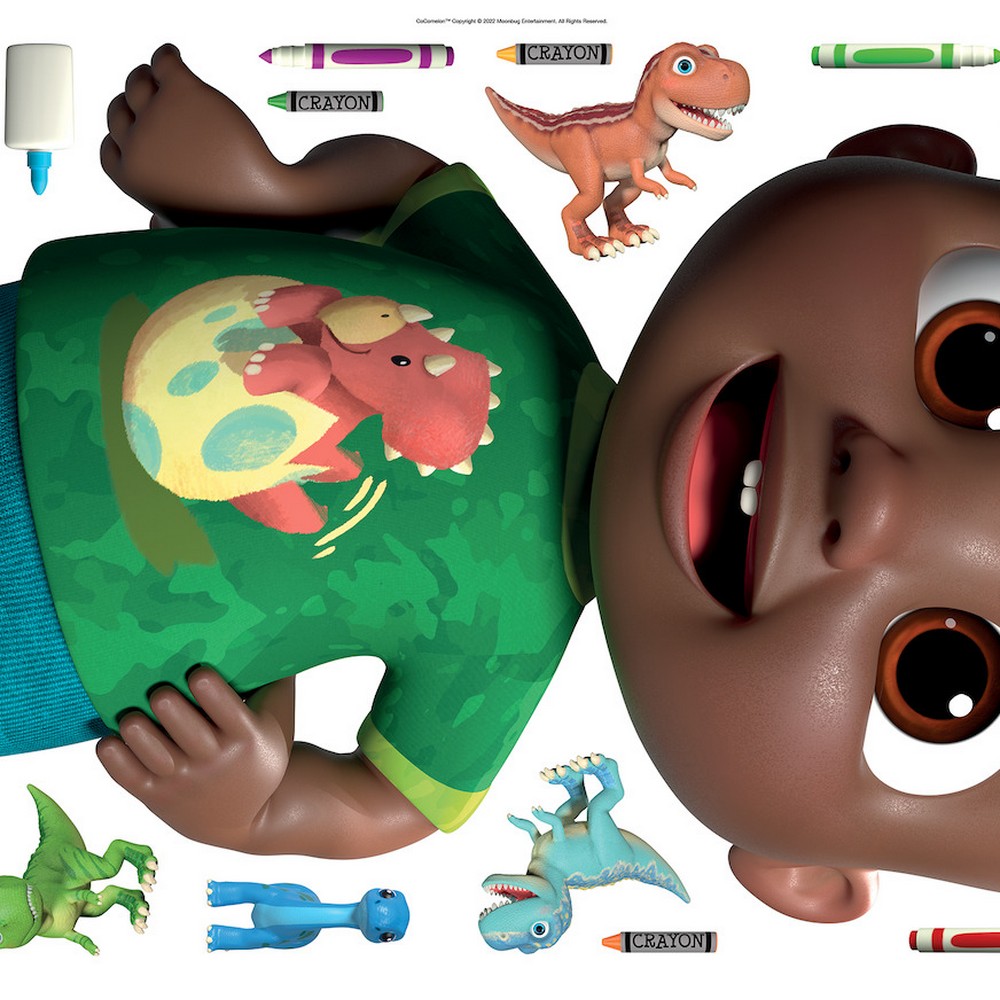 Perfect for any fan of CoComelon, this officially-licensed Cody peel and stick wall decal set is a renter-friendly way to add some fun into any room! This giant peel and stick wall decal set features Cody and his dinos, some crayons, and other various toys. Installation is as simple as peel, stick, done!