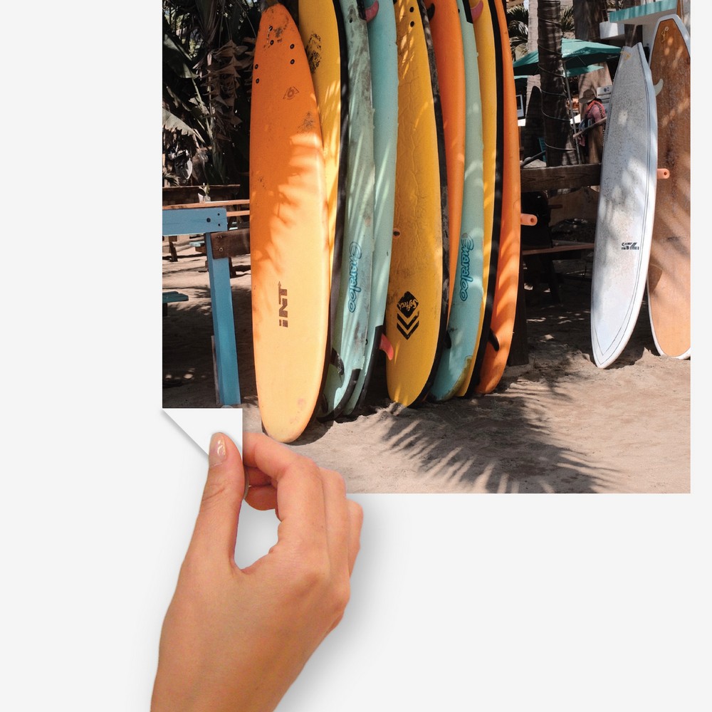 | This retro surf gallery peel and stick wall decal set is the perfect way to add some vintage cool to your room without the hassle of nailing and hanging heavy framed prints! Installing is as simple as peel, stick, done! RoomMates Color Family: Blues Photographic Beach Effect: |