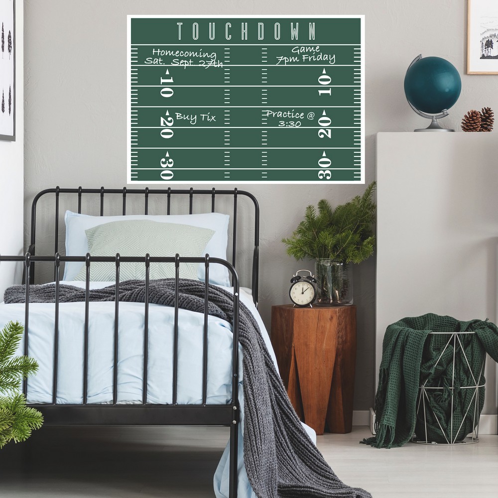 Charting out game-day plays in the locker room? We've got you covered. This football field giant peel and stick wall decal is perfect for visual coaching with its dry erase board properties! Installation is as simple as peel, stick, done!