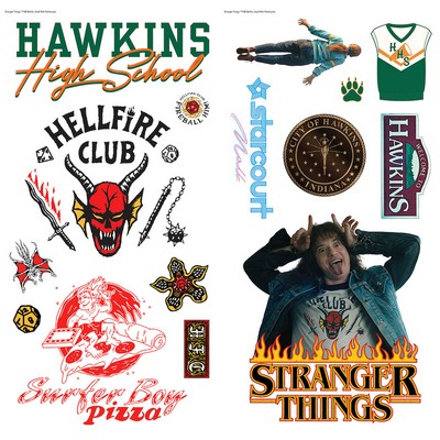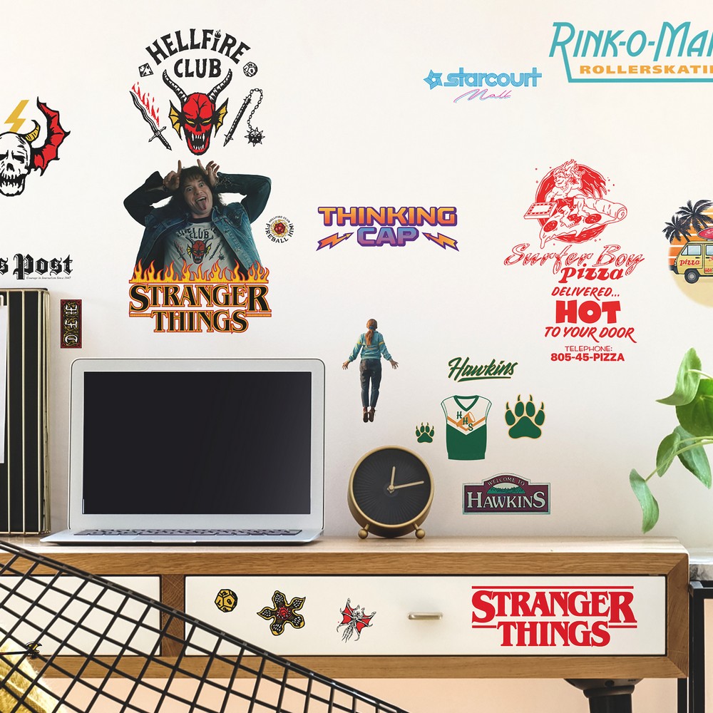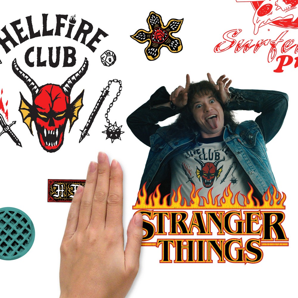 | Calling all Stranger Things fans! Officially-licensed Netflix Stranger Things season 4 peel and stick wall decals are here! Featuring The Hawkins Post, Thinking Cap, Benny's Burgers, Hellfire Club, Surfer Bar Pizza, and more, this set of renter-friendly decals has it all... yes, even that scene. Show your Hawkins pride in as little as peel, stick, done! RoomMates Color Family: Reds Whimsical Licensed Effect: |