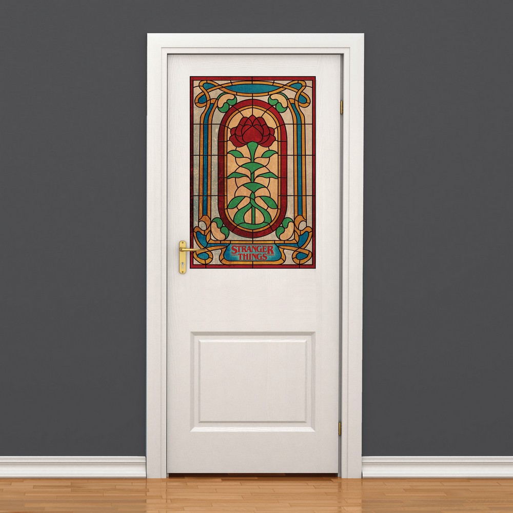 | Would you enter? This officially-licensed Stranger Things giant peel and stick wall decal is perfect for fans of the Netflix hit series! Vecna's Creel House rose window is adorned with "Stranger Things" in this renter-friendly wall decal. Incredibly easy to install: just peel, stick, done! RoomMates Color Family: Multicolor Whimsical Licensed Effect: |
