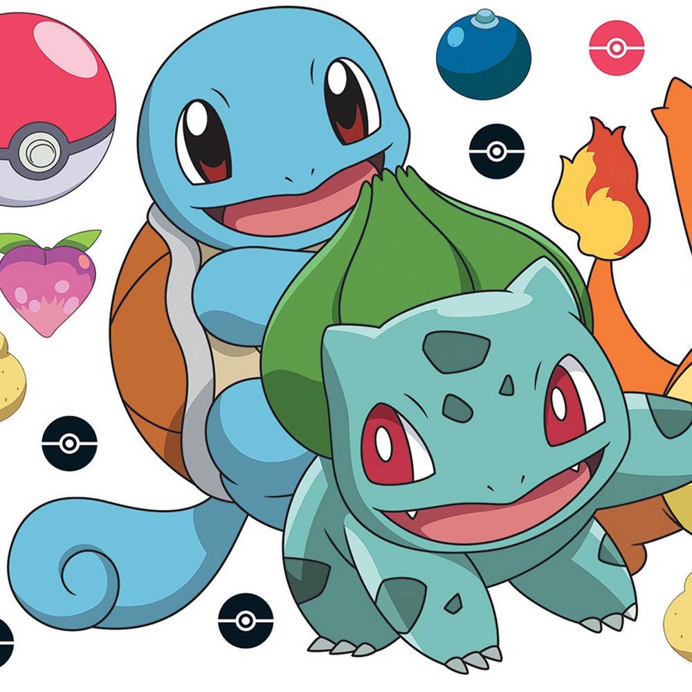 Pokemon Squirtle Charmander Bulbasaur Peel & Stick Giant Wall Decals