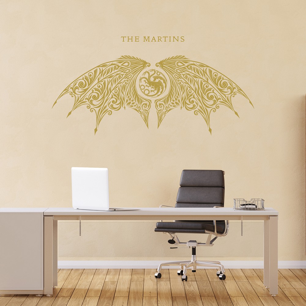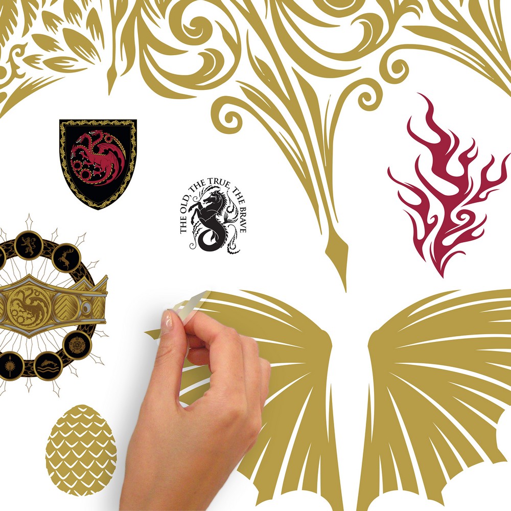 | This officially-licensed House of the Dragon wall decal set with included alphabet is a perfect addition to any fan's collection, adding a touch of magic and wonder to any room with its breathtaking design and attention to detail. Featuring gilded wings of a dragon and the crest of Targaryon in the center, this customizable wall decal is perfect for any Game of Thrones fan. Installation is as simple as Peel, Stick, Done!™ RoomMates Color Family: Multicolor Masculine Fairy Tales & Fantasy Effect: |