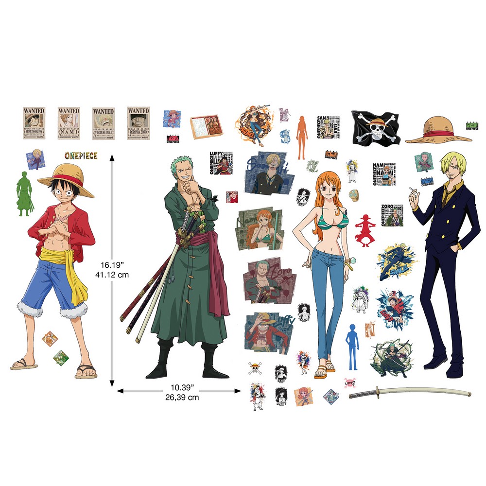 | Immerse yourself in the vivid world of One Piece with this officially-licensed Straw Hat Crew peel and stick wall decal set. Featuring Luffy, Nami, Zoro, and Sanji, along with their signature accompaniments as well as the One Piece pirate flag, this renter-friendly and removable wall decal set is the perfect accent for any fan of the series. Installation is as simple as Peel, Stick…Done!™ One Piece Straw Hat Crew Peel & Stick Wall Decals contains 56 pieces on 4 sheets that each measures 9-in x 17.975-in. RoomMates Color Family: Browns Kids Graphics Effect: |