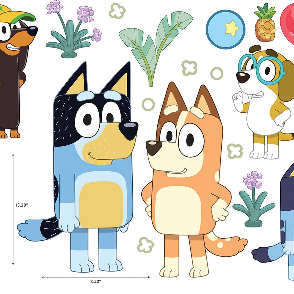 Let’s take this to the max! Bring the curious joy of Bluey, Bingo, Bandit, Chilli and their pals to any room with this officially-licensed peel and stick wall decal set from RoomMates! We’re making good times for real life in just Peel, Stick…Done!® Bluey Family & Friends Wall Decals contains 40 pieces on 4 sheets that each measures 9-in x 17.975-in.