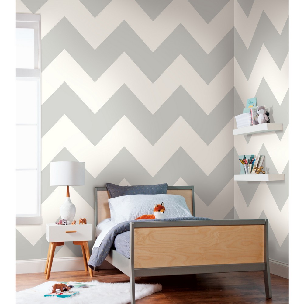 | Graphically stunning, currentize your room with Grey Large Chevron Peel and Stick Wallpaper by RoomMates. Offering a fun and new way to decorate, Peel and Stick Wallpaper is printed on high quality vinyl that is repositionable and removable, making it a go-to, budget-friendly choice for both temporary and permanent projects. Perfect for accent walls, furniture, backsplashes, DIY decor, and more, simply peel and stick to install. Completely easy, make endless style-worthy possibilities with RoomMates Peel and Stick Wallpaper. RoomMates Peel & Stick Color Family: Greys current Global Effect: |