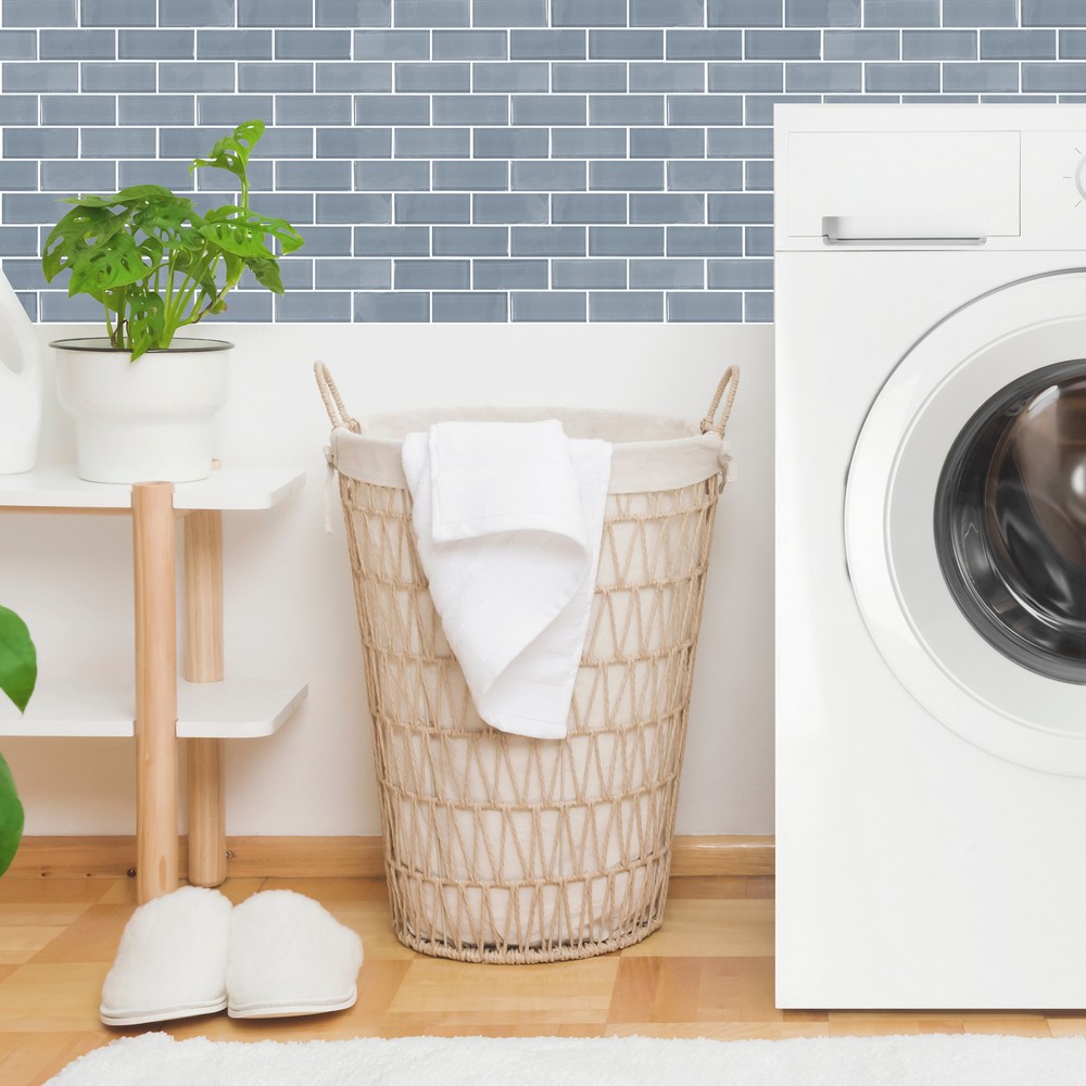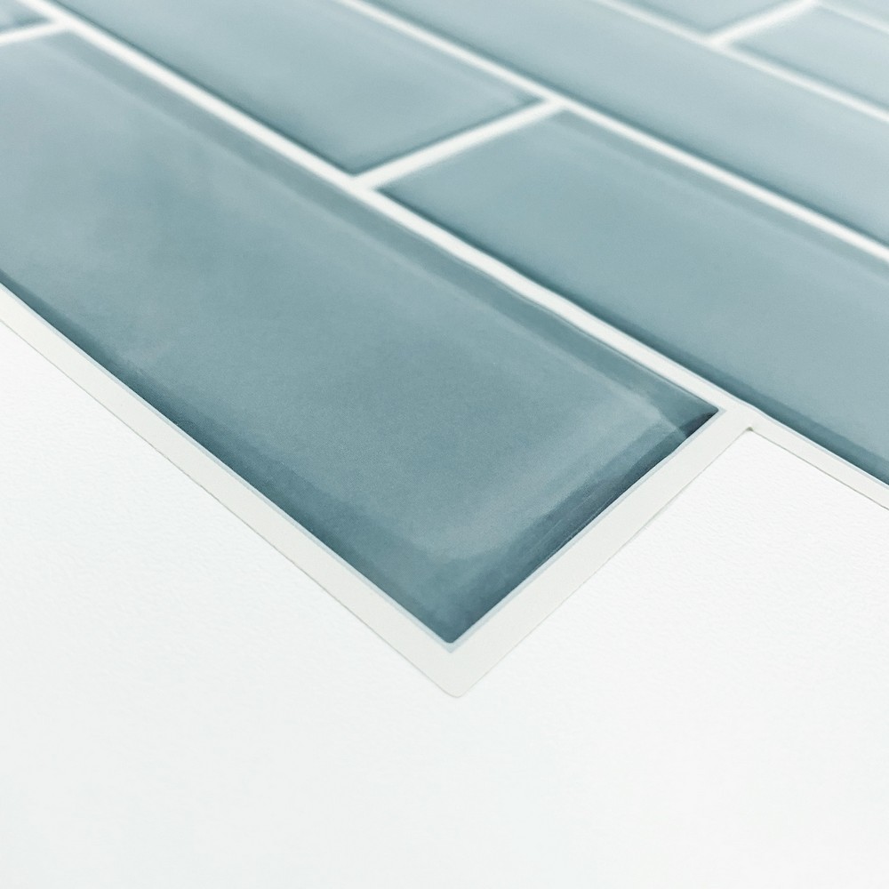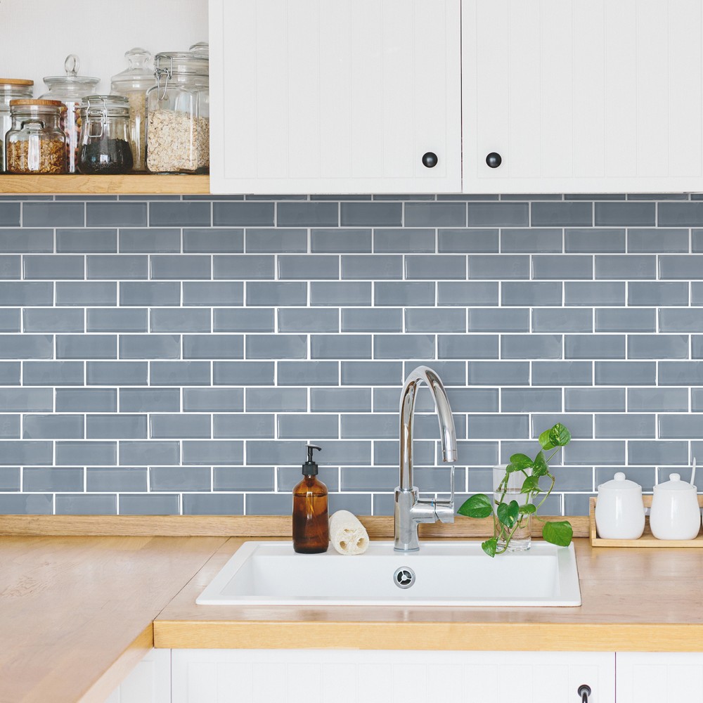 | make the look of real subway tile with this peel and stick backsplash! Made to look and feel like the real thing, this budget-friendly solution will upgrade your countertop room in as little as peel, stick, done! RoomMates Color Family: Blues Industrial Graphics Effect: |