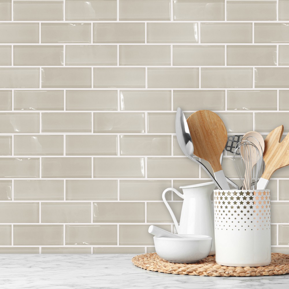 | make the look of real subway tile with this peel and stick backsplash! Made to look and feel like the real thing, this budget-friendly solution will upgrade your countertop room in as little as peel, stick, done! RoomMates Color Family: Neutrals Industrial Graphics Effect: |