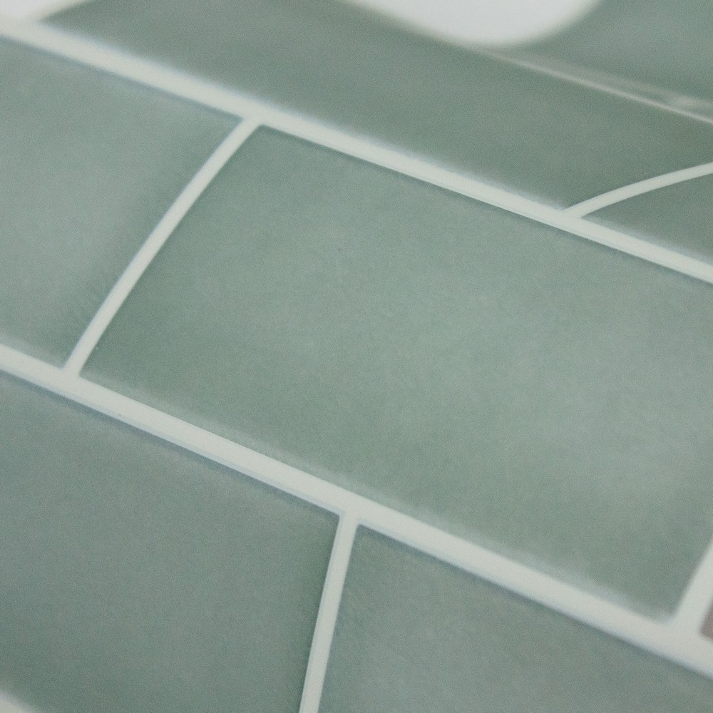 | make the look of real subway tile with this peel and stick backsplash! Made to look and feel like the real thing, this budget-friendly solution will upgrade your countertop room in as little as peel, stick, done! RoomMates Color Family: Greens Industrial Graphics Effect: |