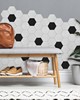 | Honeycomb tiles make a unique finish for any countertop room, and now the look is achievable in as little as peel, stick, done! Hexagon peel and stick backsplash tiles make the look and feel of authentic tile at a fraction of the cost and without the need for professional tools. RoomMates Color Family: Blacks Industrial Graphics Effect: |