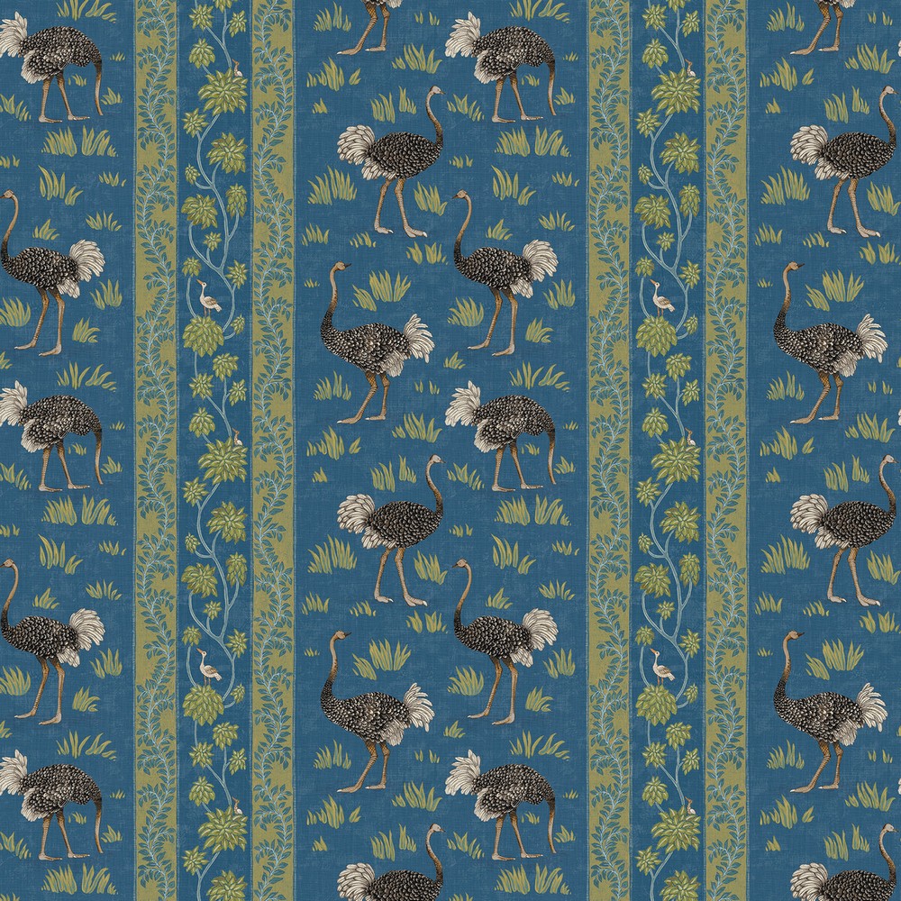 | Kravet Wallcoverings JOSEPHINE MUNSEY MAITLAND BOTANICAL & FLORAL STRIPES PRINT PRETRIMMED BLUE and GOLD Wallpaper Priced and sold by the roll of 11 Yards Pattern Direction: Up the bolt |