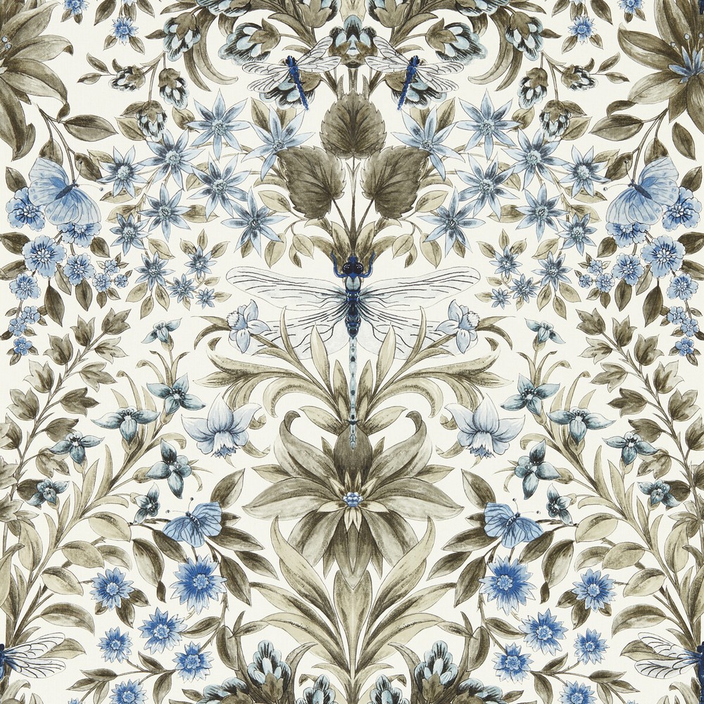 | PRINT ANIMAL/INSECTS BOTANICAL & FLORAL CLARKE & CLARKE SECRET GARDEN WALLCOVERING CLARKE AND CLARKE Colors: Blue Grey Wallpaper sold and packaged in 11 Yard Roll |