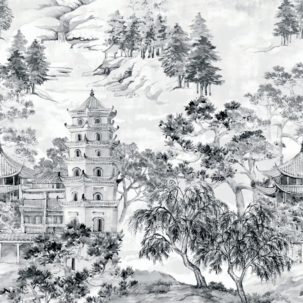 | Kravet Wallcoverings PANEL DESIGNS CHINOISERIE BOTANICAL & FLORAL PRINT MURALS / PANELS GREY and CHARCOAL Wallpaper Pattern Direction: Up the bolt |